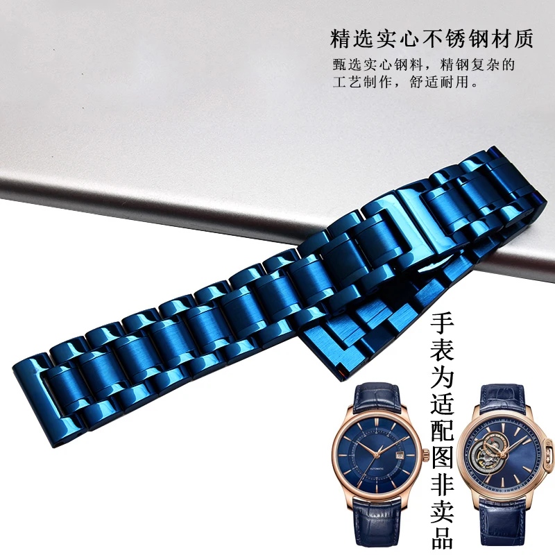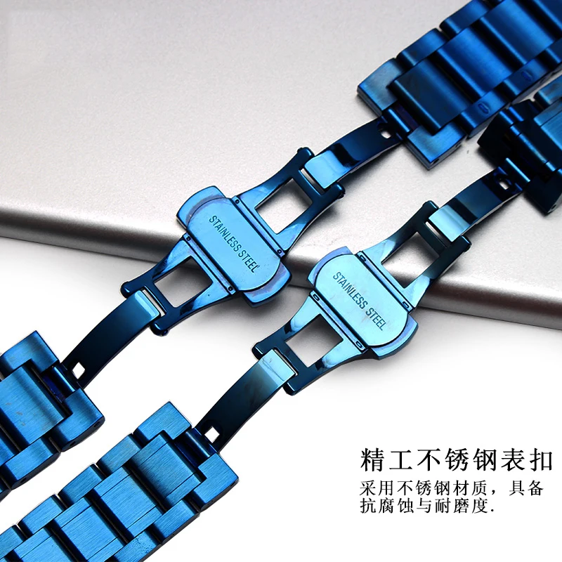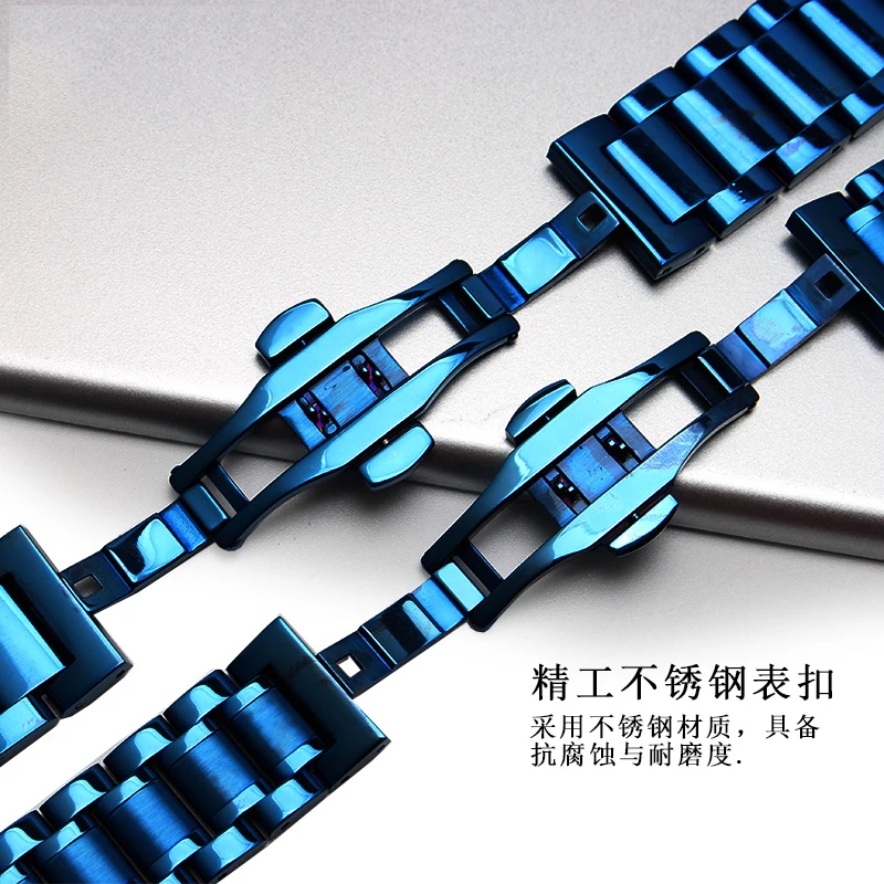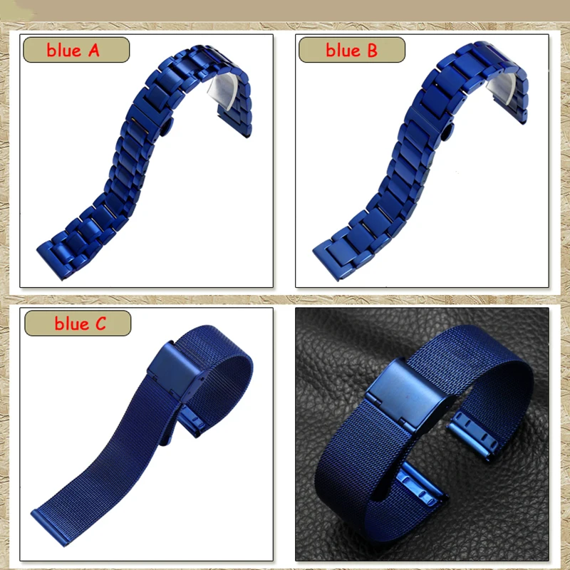 Новый синий ремешок для часов из нержавеющей стали, металлический ремешок для браслета 18 мм 20 мм 22 мм, прямой конец для мужчин и женщин, модные часы