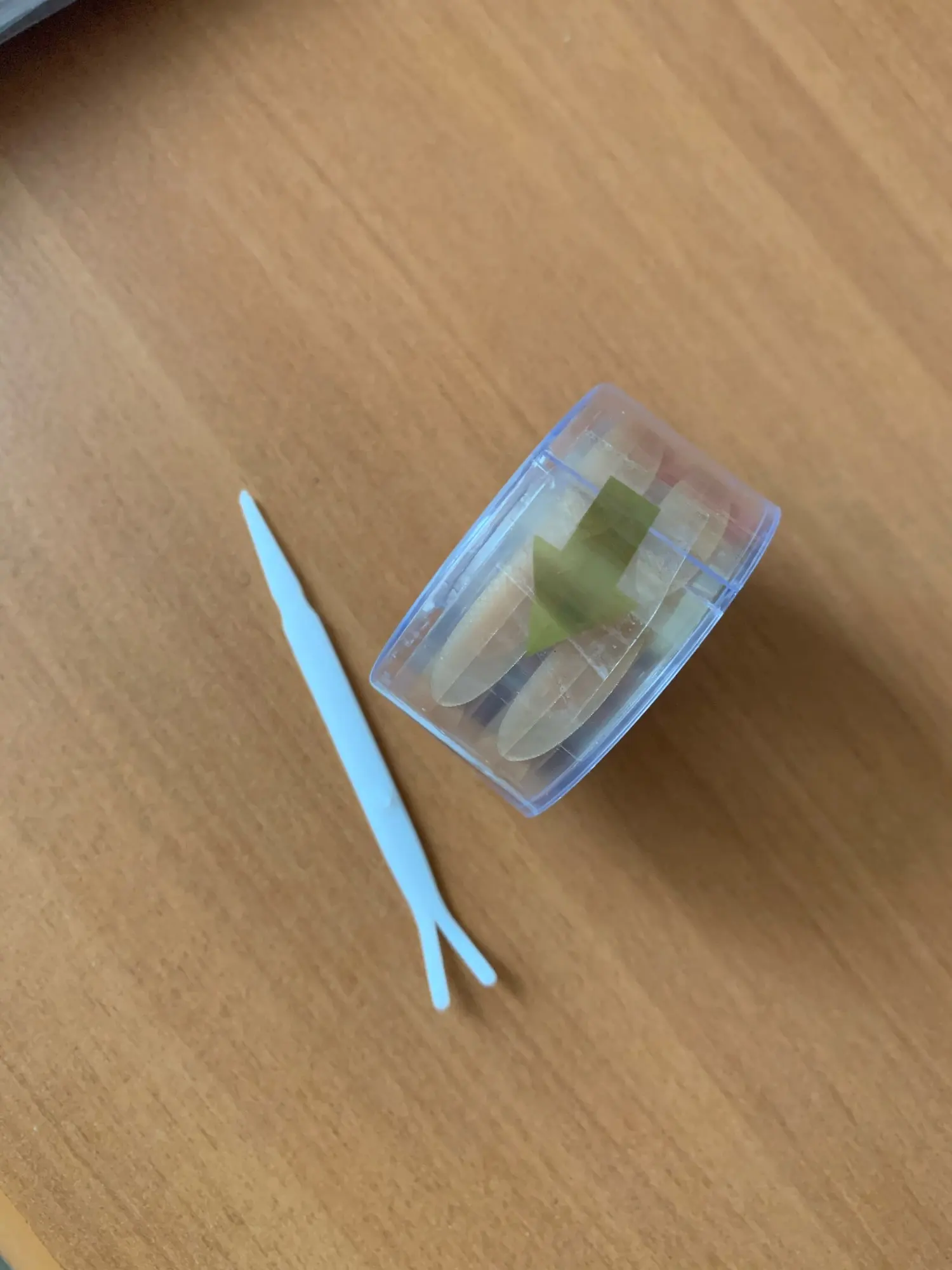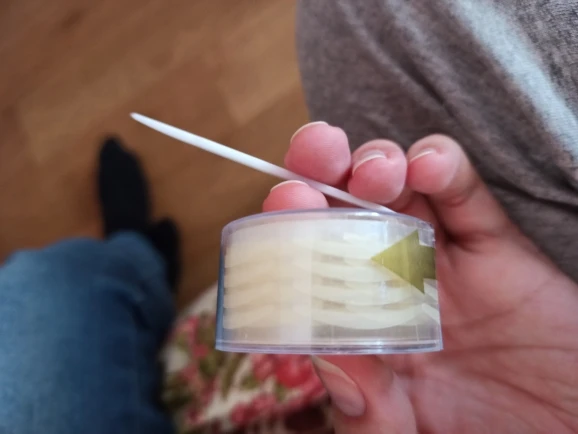 ленточки очень лёгкие и хорошо клеются. но есть свои минусы: там где берёшь ленточку потом плохо прилегает к веку. И к сожалению я так и не нашла то место наклеивания, мой глаз выглядит уставшим и замученным.