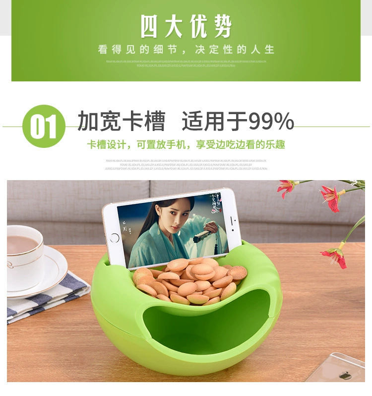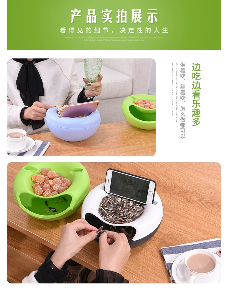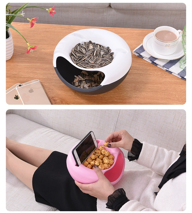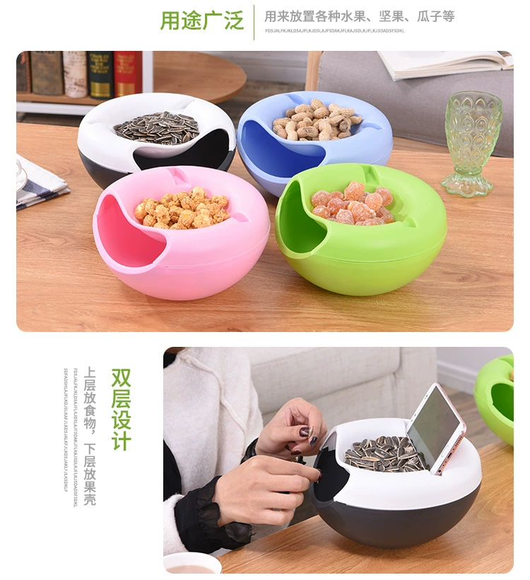 Чаша двухслойная для сухих фруктов, контейнер для закусок, семян, коробка для хранения держатель мусора, блюдо-органайзер с держателем для телефона, WF
