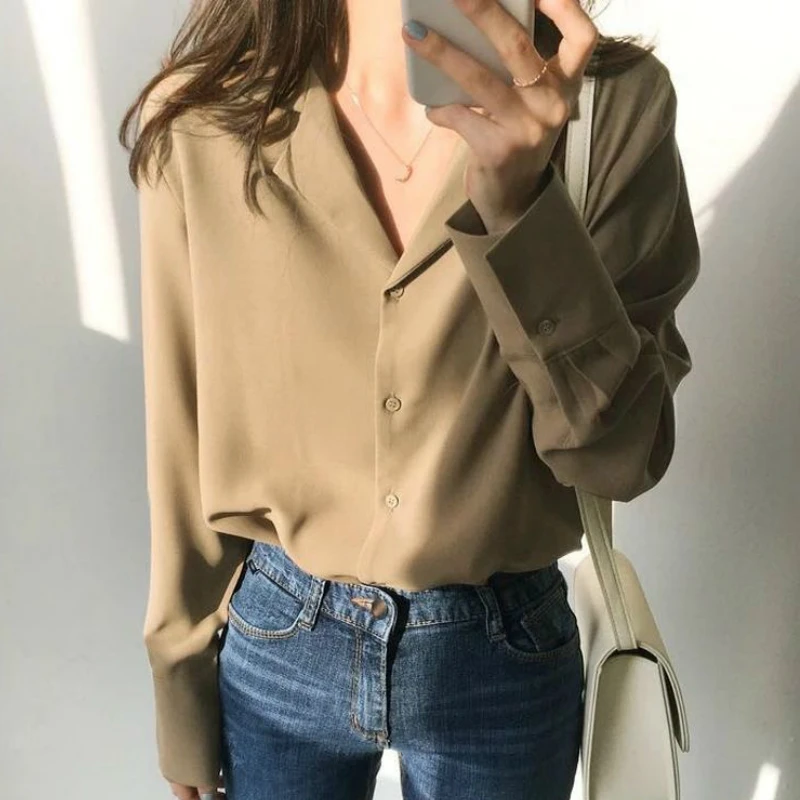 Женские топы и блузки, однотонная белая шифоновая блузка, Офисная р...