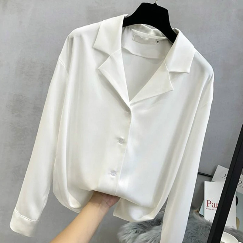Блузка женская с длинным рукавом, офисная, белая шифоновая блузка, ...
