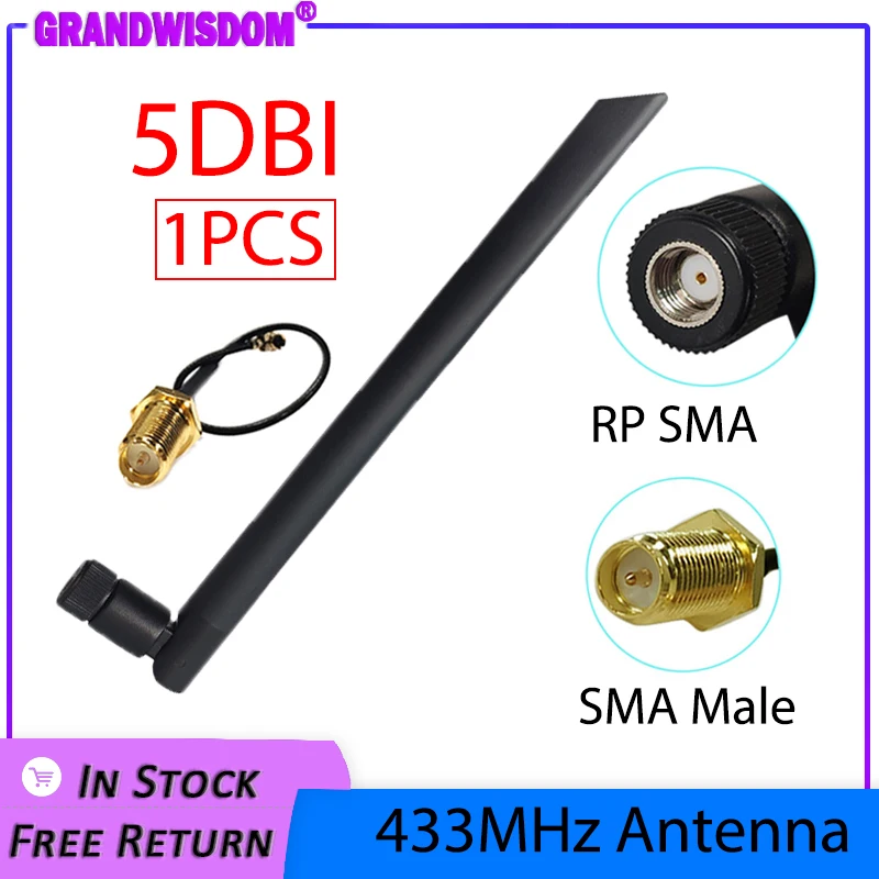 GRANDWISDOM 1 шт. 433 МГц Антенна 5dbi sma женский lora antene модуль lorawan antene ipex 1 SMA Мужской pigtail Удлинительный кабель