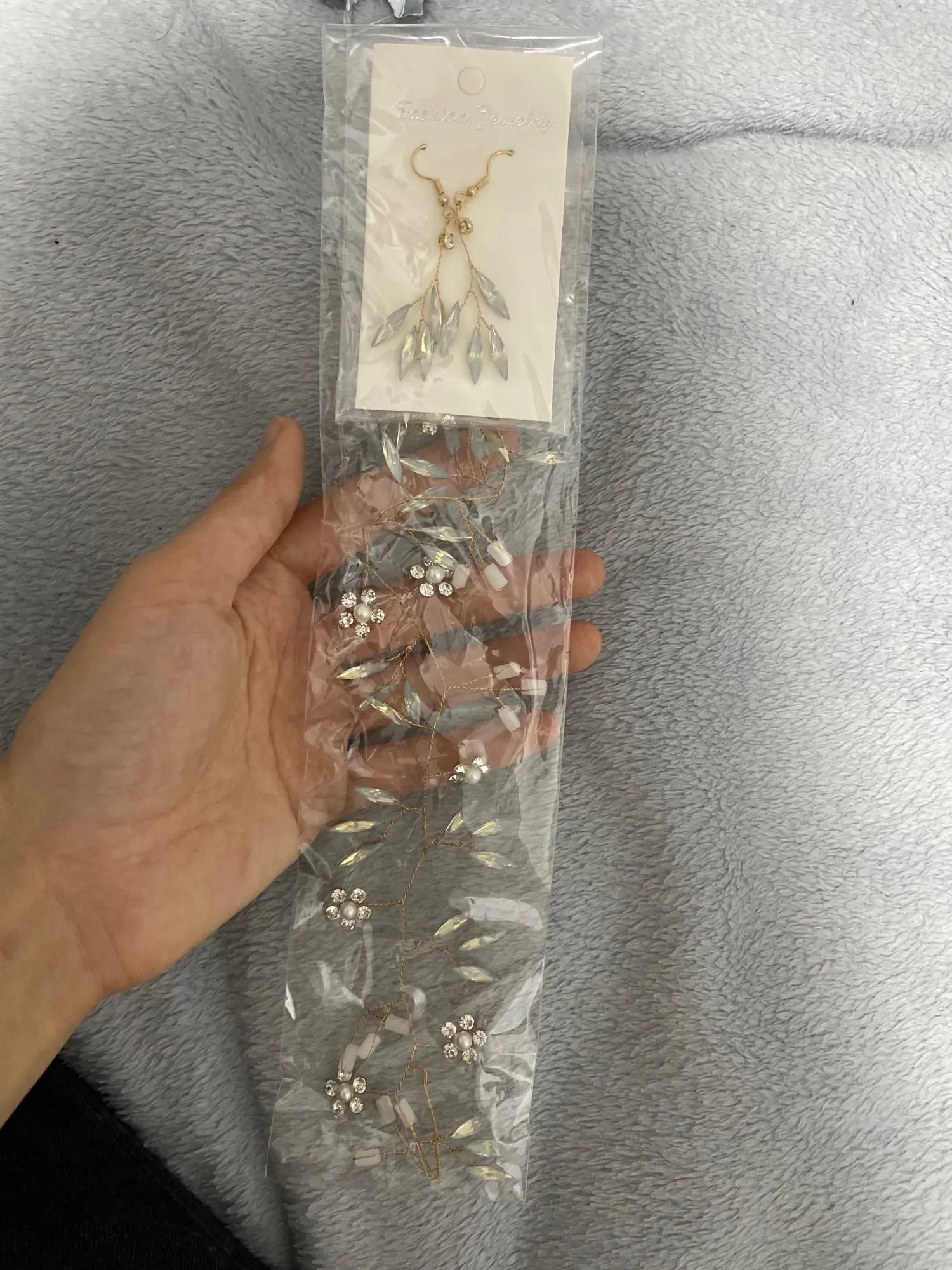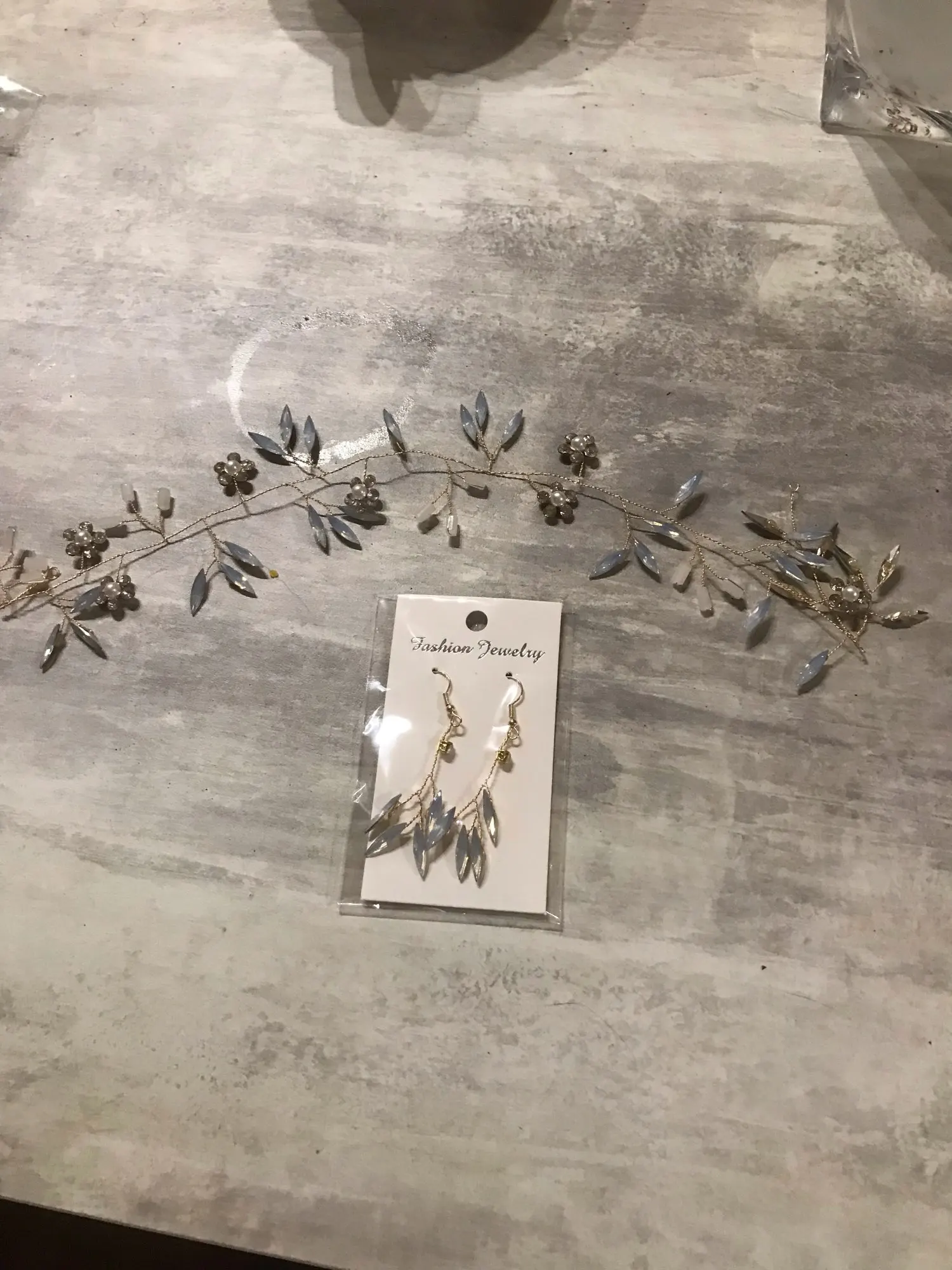 Хлипкое безобразие. Абсолютно не стоит потраченных денег. В реальности выглядит совсем как ширпотреб. На сережках клей торчит, на ободке тоже.