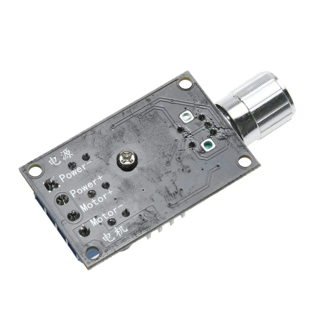 Этот контроллер скорости двигателя постоянного тока позволяет контролировать направление двигателя постоянного тока с помощью импульсного модулированного (ШИМ) напряжения постоянного тока с циклом работы, полностью регулируемым от 0%-100%.Контроллер скорости двигателя может легко обеспечить непрерывный ток 3A для вашего двигателя постоянного тока или другой нагрузки постоянного тока.Характеристики:Входное напряжение питания: 6-28 В постоянного токаМаксимальная выходная мощность: 80 ВтМаксимальный непрерывный выходной ток: 3AРегулируемый Рабочий цикл: 0%-100%Инструкции:1. Подключите двигатель постоянного тока (или нагрузку постоянного тока) к клеммам двигателя, как указано на схеме проводки.2. Подключите напряжение 10-36 В постоянного тока к цепи, чтобы убедиться в правильной полярности подключения. Обратите внимание, что напряжение, применяемое к двигателю, будет прилагаться к цепи. Рекомендуется добавить соответствующий Номинальный предохранитель с положительным источником для защиты цепи от любых возможных коротких замыканий.3. Теперь вы можете контролировать скорость двигателя через потенциометр.Посылка включает в себя:1 х ШИМ контроллер скорости двигателя постоянного тока с потенциометром