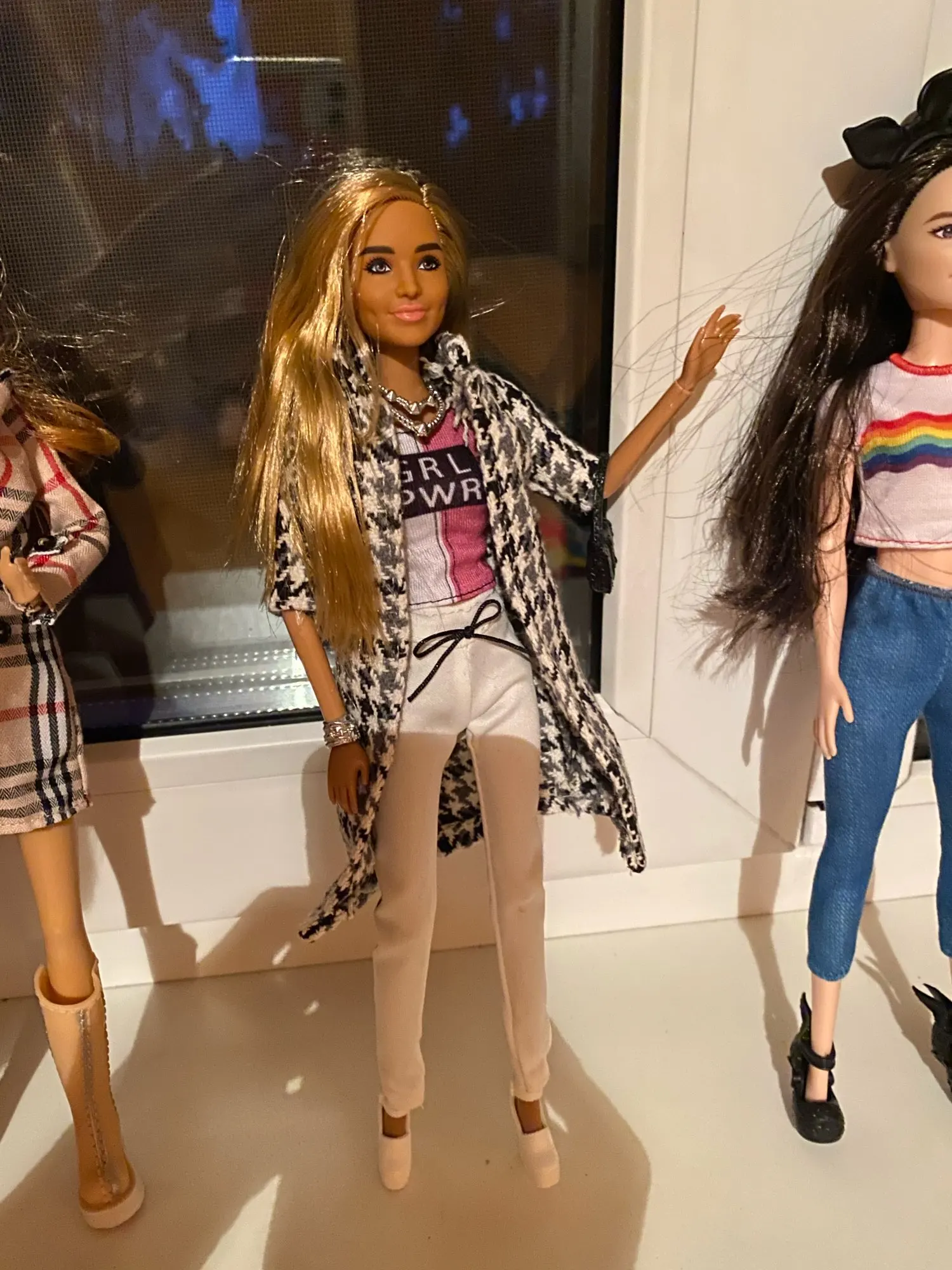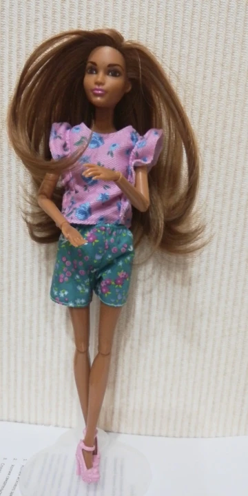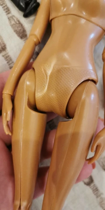 Есть небольшие потёртости на теле. И некоторые шарниры туговаты. Но в целом покупкой довольна, особенно обувью в комплекте )