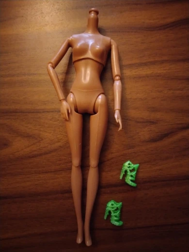 Тело пришло за месяц до Москвы, на территории РФ не отслеживалось. Качество на уровне 300 рублей, но, думаю, напильник и наждачка помогут добиться лучшего вида. Материал похож на те резиновые ноги кукол из 90-х, которые прорывались щелчковыми коленными шарнирами. Шейного шарнира нет, но так даже лучше, не сломается если нужно будет снимать голову. Брала на глаз для Барби из 90-х, тон подошел.