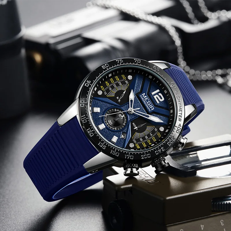 Мужские часы MEGIR с силиконовым ремешком, спортивные кварцевые часы с хронографом в стиле милитари, роскошные брендовые часы, мужские часы