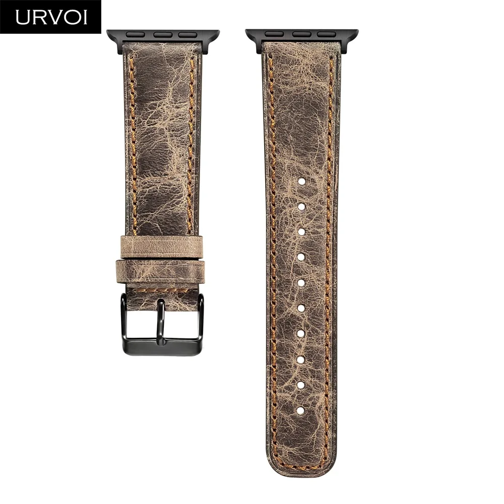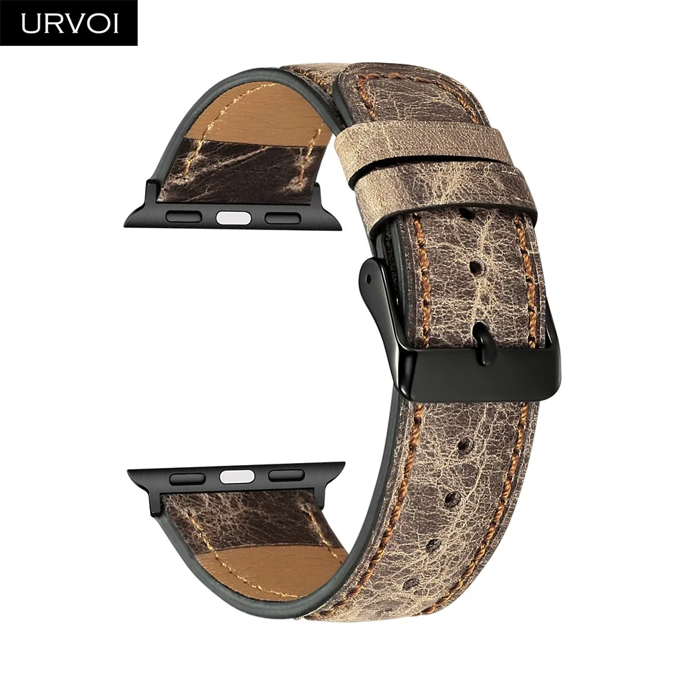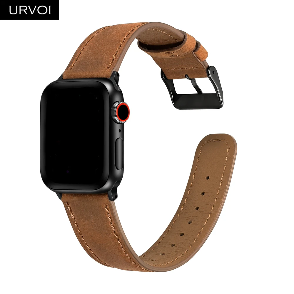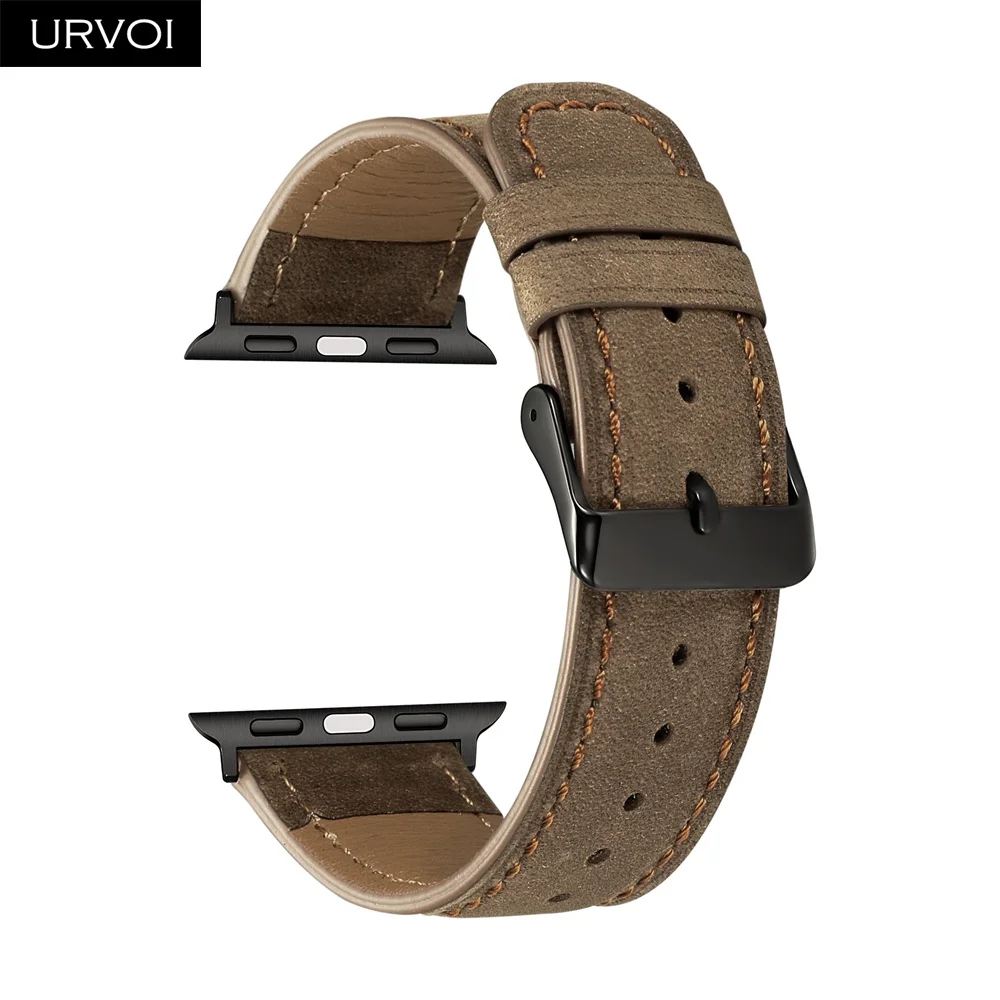 Ремешок URVOI для apple watch series 7 6 SE 5 4 3 2 1, кожаный мягкий и удобный браслет из телячьей кожи с черной пряжкой для iwatch, 41 45 мм
