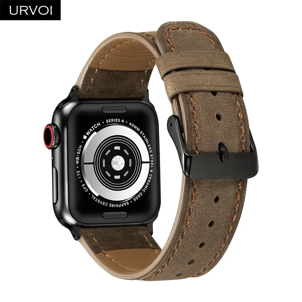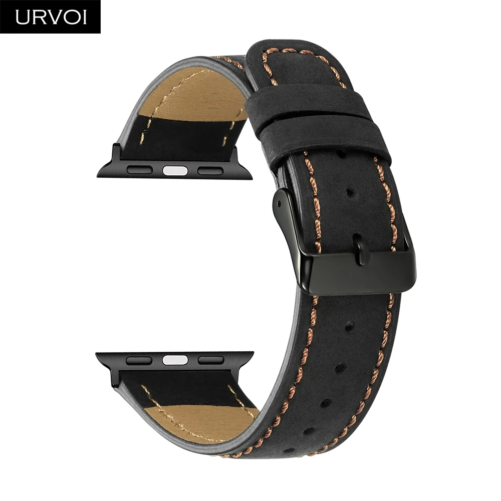 Ремешок URVOI для apple watch series 4 3 2 1 кожаный ремешок для iwatch черная Пряжка мягкая и удобная телячья кожа 40 44 мм