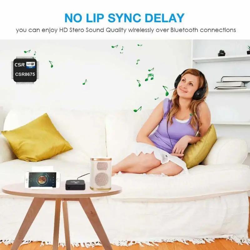 Питание от чипсета Премиум CSR8675, bluetooth-адаптер CRDC поддерживает новейший Bluetooth V5.0. С aptX HD, наш bluetooth-передатчик/приемник может передавать стабильный звук и доставлять звук CD-качества по беспроводной сети через bluetooth-соединения.