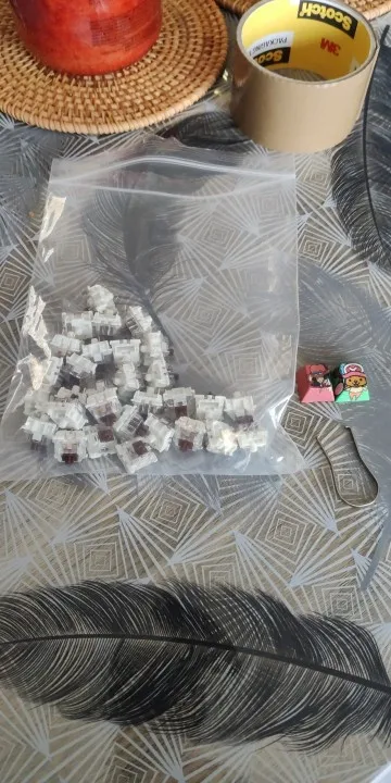 Коричневые переключатели для меня лучшие. Красные слишком мягкие, черные слишком жесткие. Качество отличное, каждый работает хорошо. Смазка сделала переключатели мягче и тише. Я доволен товаром. Доставка была быстрая. Несколько заказов объединили в один и доставили в пункт выдачи СДЭК около дома.