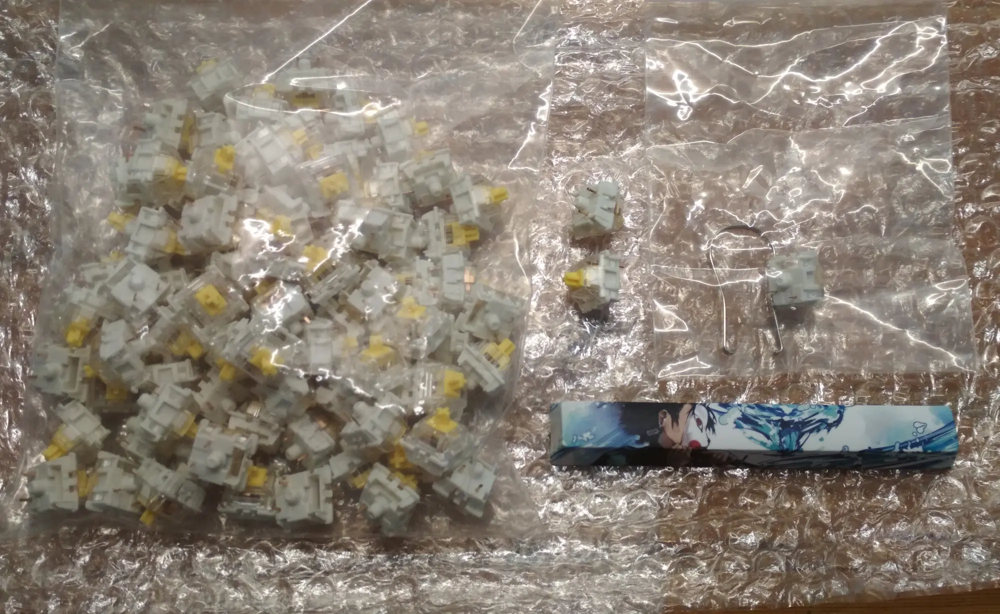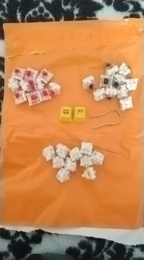 Заказ займет некоторое время, но я очень доволен этими переключателями. Я купил коричневые и использовал их для замены выключателей по умолчанию на моем RK87. Они чувствуют себя намного лучше, чем стандартные RK переключатели, а также очень тихие-но это, как ожидается, идет от синего до коричневого. Я также получил подарочную балку с аниме-принтом, конечно, мне пришлось установить ее. Теперь моя клавиатура выглядит очень свежей, закажу больше переключателей у этого продавца.