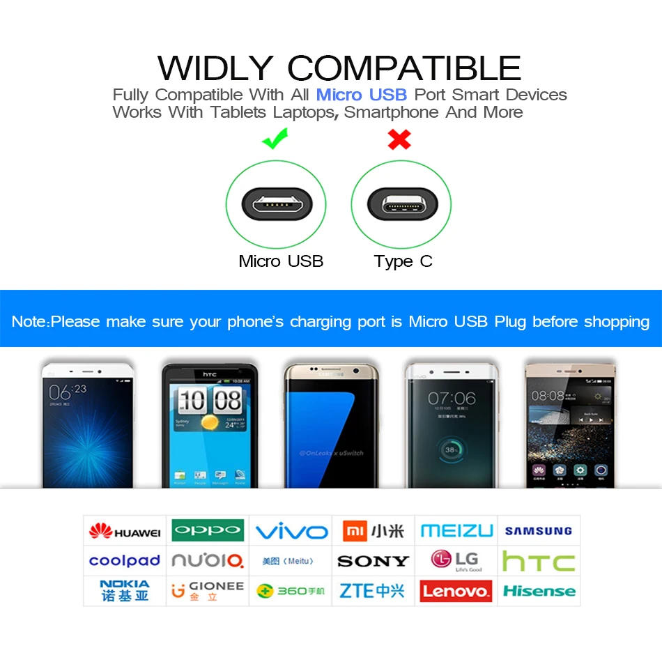 Feature 1Micro Cable For Samsung S6 S7 S5 S4 Sony HTC