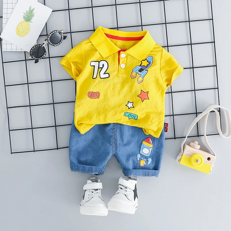 Комплект летней одежды HYLKIDHUOSE для маленьких девочек и мальчиков, костюмы для младенцев, футболка с лацканами и шорты, детская повседневная одежда