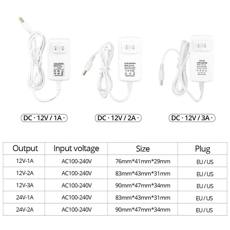 Адаптер питания 12 В, 1 А, 2 А, 3 А, белая крышка, трансформатор для светодиодной ленты, светодиодсветильник лента, светодиодный драйвер, вилка стандарта СШАЕС