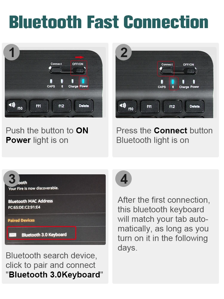 1 x Bluetooth клавиатура(Черный цвет, английская, испанская и русская версии)
