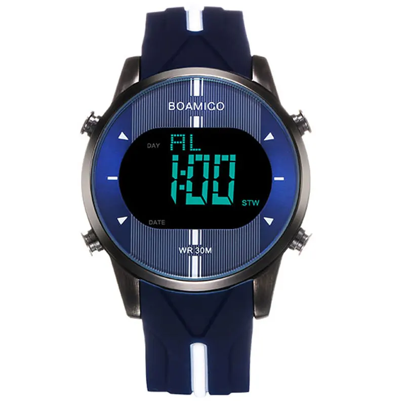 Мужские водонепроницаемые электронные часы со светодиодной подсветкой и резиновым ремешком