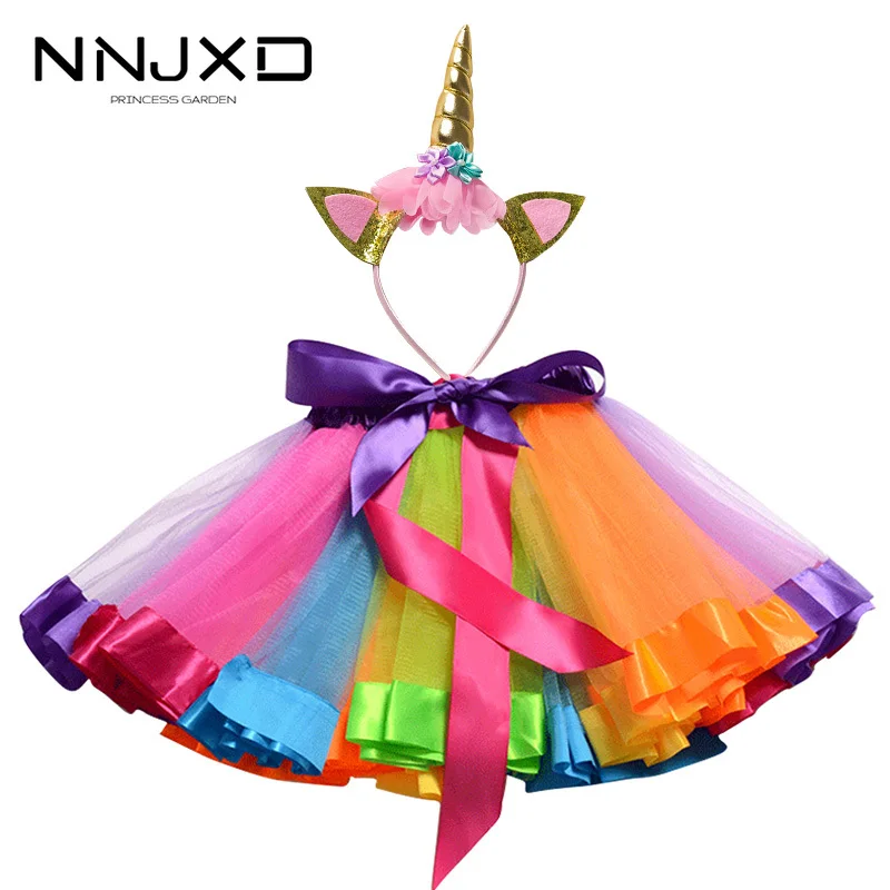 Бесплатная Единорог повязка на голову, юбка-пачка принцессы для девочек на возраст от 12 мес. до 8 лет, одежда для маленьких девочек радужные Детские вечерние платья-пачки для девочек; Юбки; Детский бальный наряд