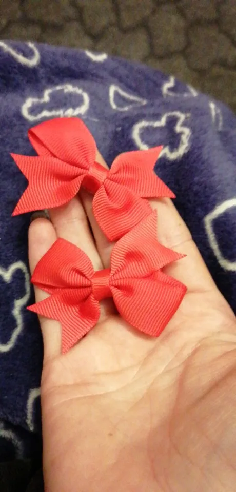 Прекрасные бантики, цвет точно как на фото, зажимы аккуратные, держат хорошо. Доставка 2 недели в общей посылке, восторг!)