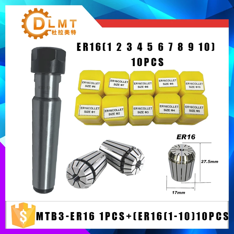 Патрон для конуса MT3 ER16 MTB3 ER16A M6 Morse #3 + 10 пружинных патронов 12345678910 мм, 1 шт.