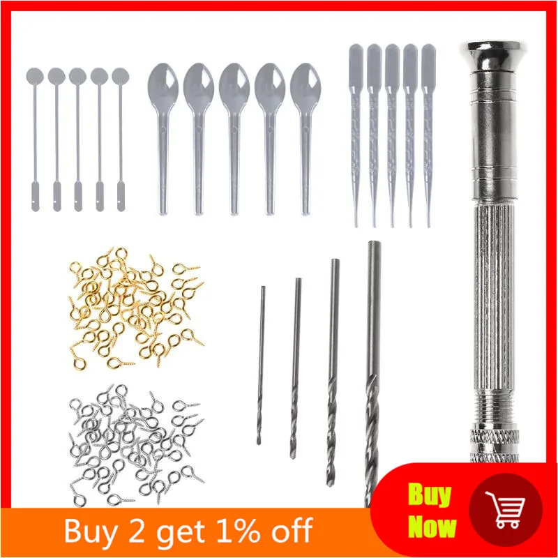 Набор для самостоятельного изготовления ювелирных изделий из эпоксидной смолы, 1 комплект, булавки для сверления, золотое ожерелье, подвеска, капельница, ложка, Смешанные палочки, аксессуары