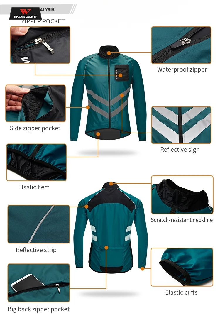 WOSAWE Сверхлегкий Светоотражающие Для Мужчин's велосипедная куртка...