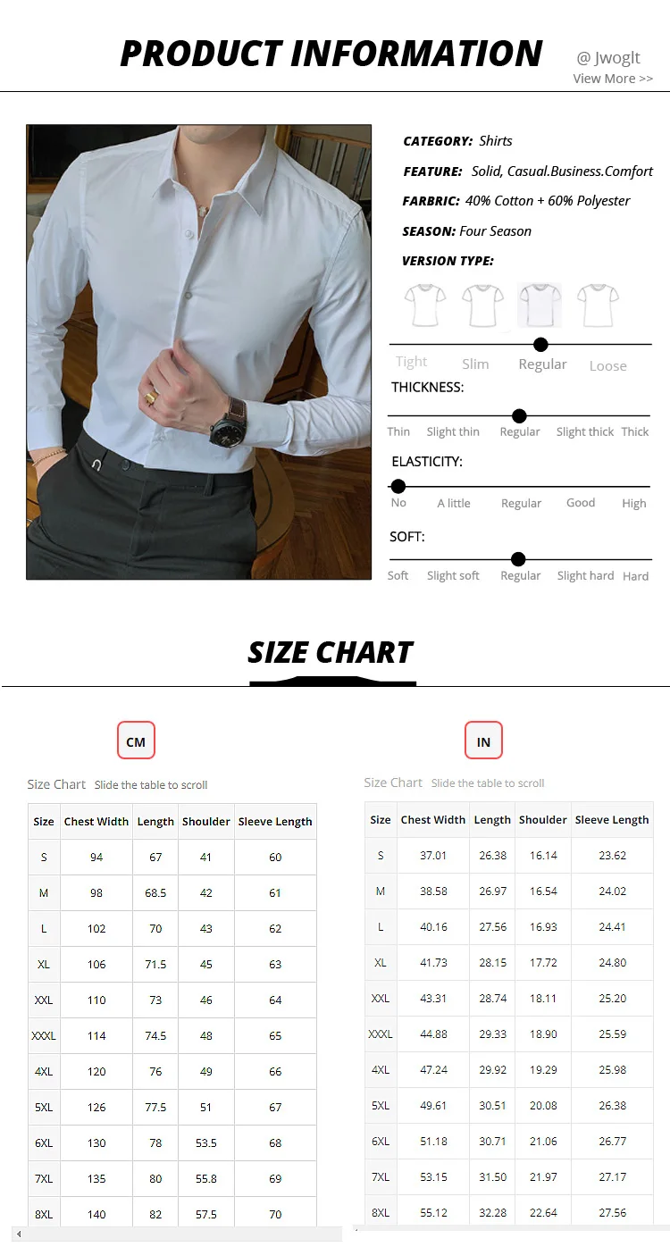 Мужская хлопковая рубашка с длинным рукавом, белая или черная однотонная приталенная деловая Классическая рубашка, размеры до 5XL, 6XL, 7XL, 8XL, 2022