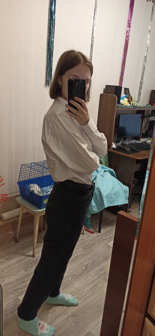 Рубашка понравилась. Сшита аккуратно, все строчки ровные, швы классические. Ткань приятная на ощупь, гладкая. Силуэт приталенный. Брала размер М по таблице продавца на подростка 165см/52кг, как раз. Цвет белый, не желтит. Доставка заняла месяц.