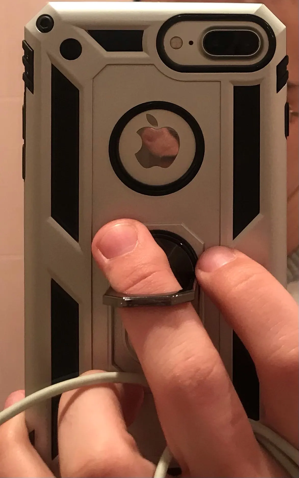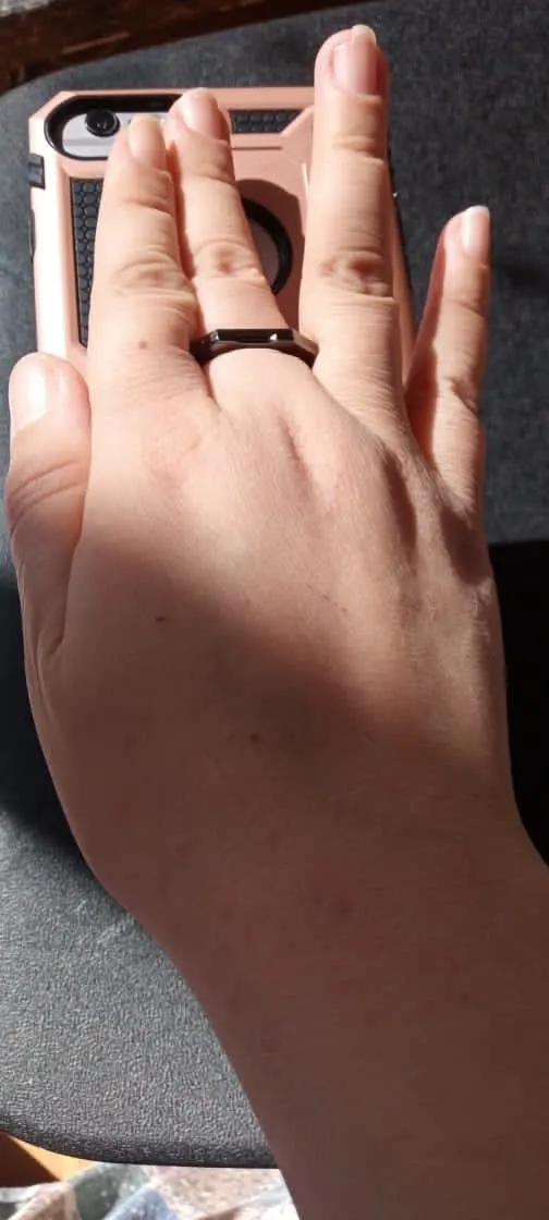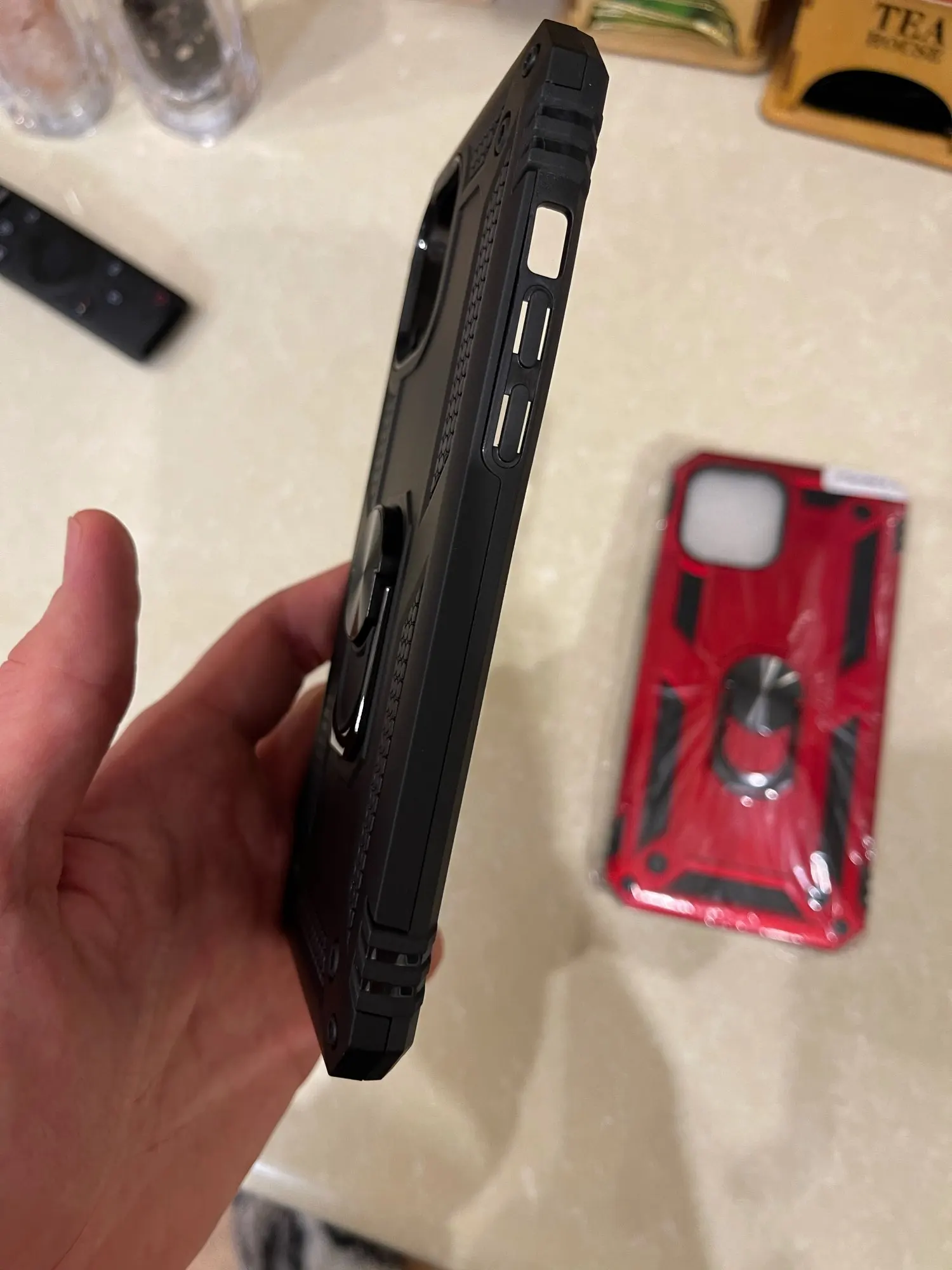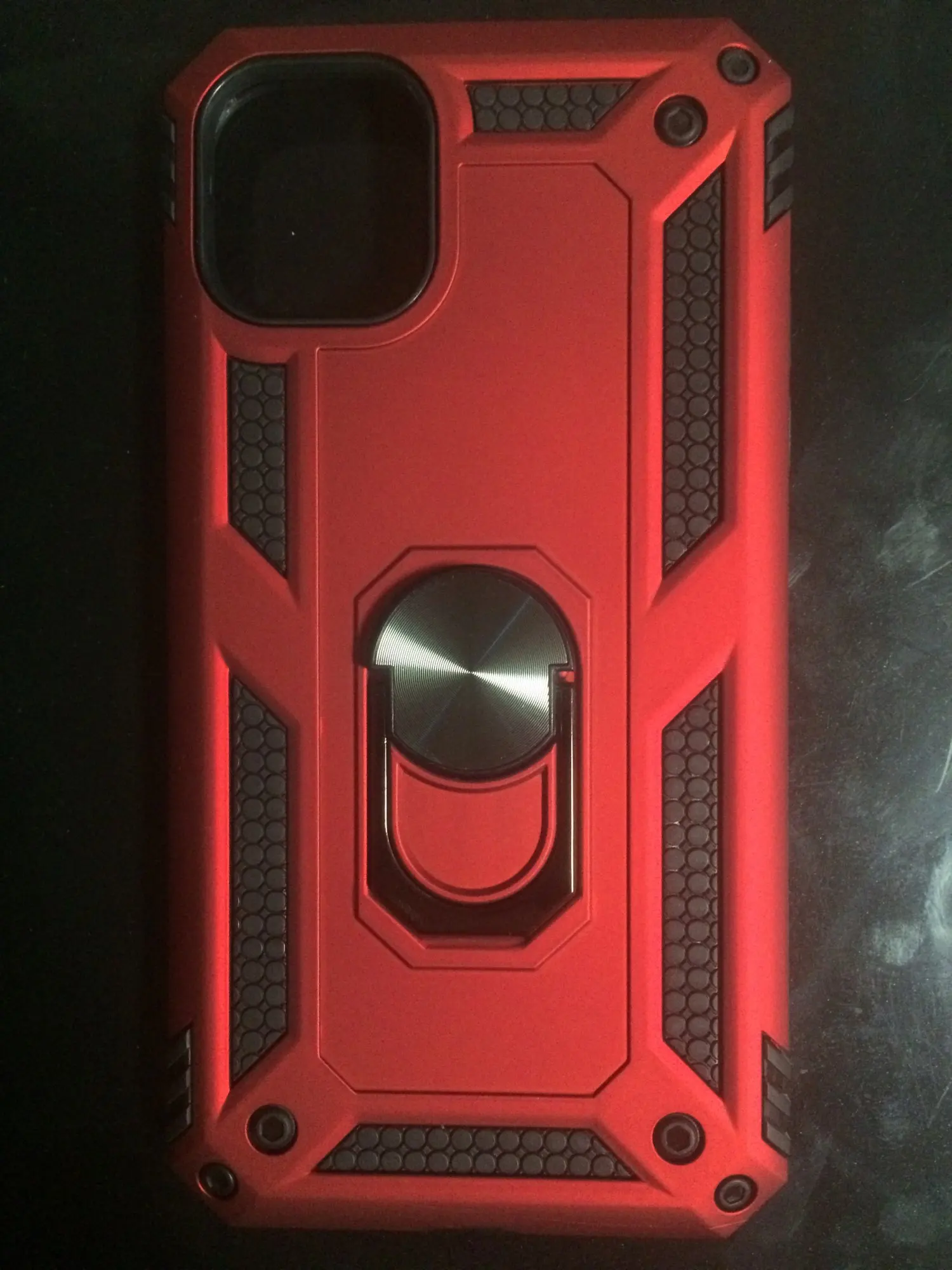 Точно как на фото. Материал приятный. Вытянутое кольцо чуть менее удобно, чем круглое, для ношения на пальце, зато не крутится, возможно, проживёт дольше, чем прошлый похожий чехол. Красный цвет обалденный. В общем, всё очень здорово, только шло до Москвы целый месяц и не отслеживалось