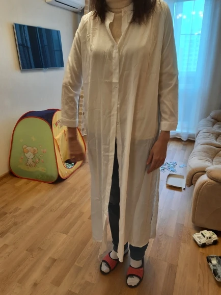 Великолепная пляжная рубашка! Цвет - идеально белый. Ткань: котон (смесь хлопка с шелком). С легким полуматовым блеском. Можно носить и как пляжную одежду, и как рубашку в бохо-стиле с джинсами. Все швы аккуратные. Большое спасибо Продавцу и Магазину! Буду всем рекомендовать этот великолепный магазин!!! Great beach shirt! The color is perfectly white. Lined. Fabric: cotton / silk blend. With a slight semi-matte sheen. Can be worn as beachwear or as a boho shirt with jeans. All seams are neat. Many thanks to the Seller and the Store! I would recommend this great store to everyone !!!