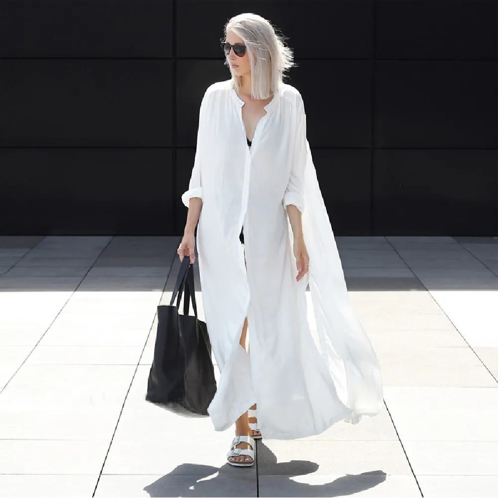 Женская пляжная одежда большого размера, длинное пляжное платье-кафтан, Белая Туника, накидка для купания, накидка на бикини, # Q737
