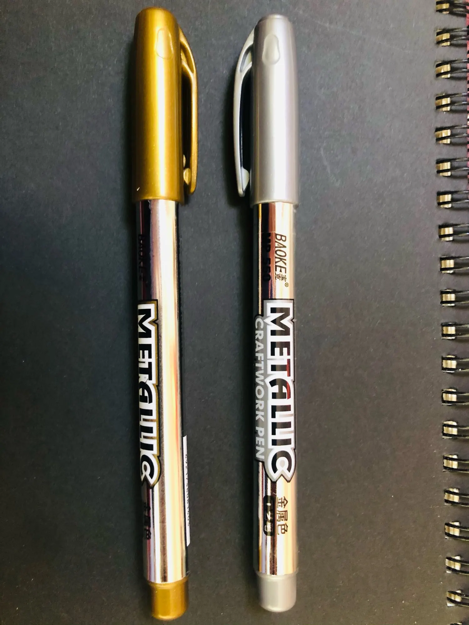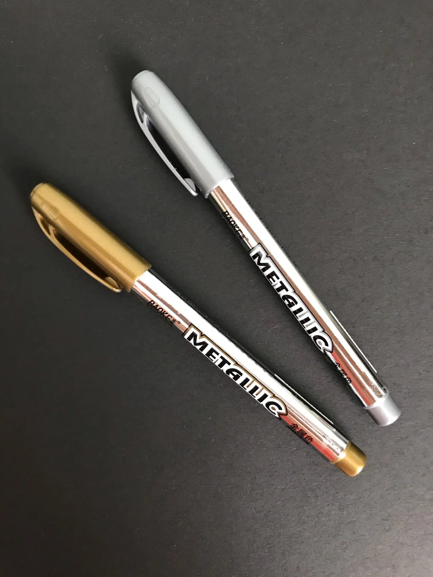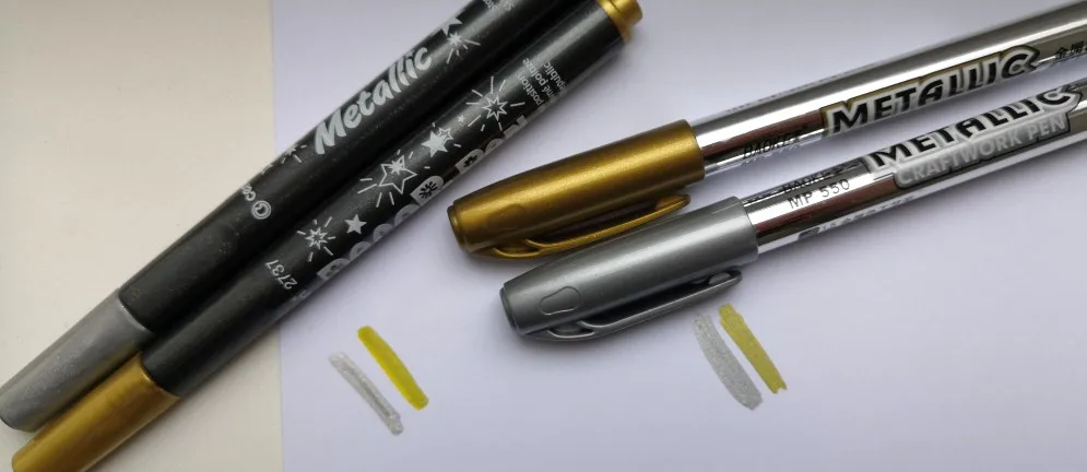Золотой маркер пишет по черной бумаге очень ярко, серебряный бледнее.