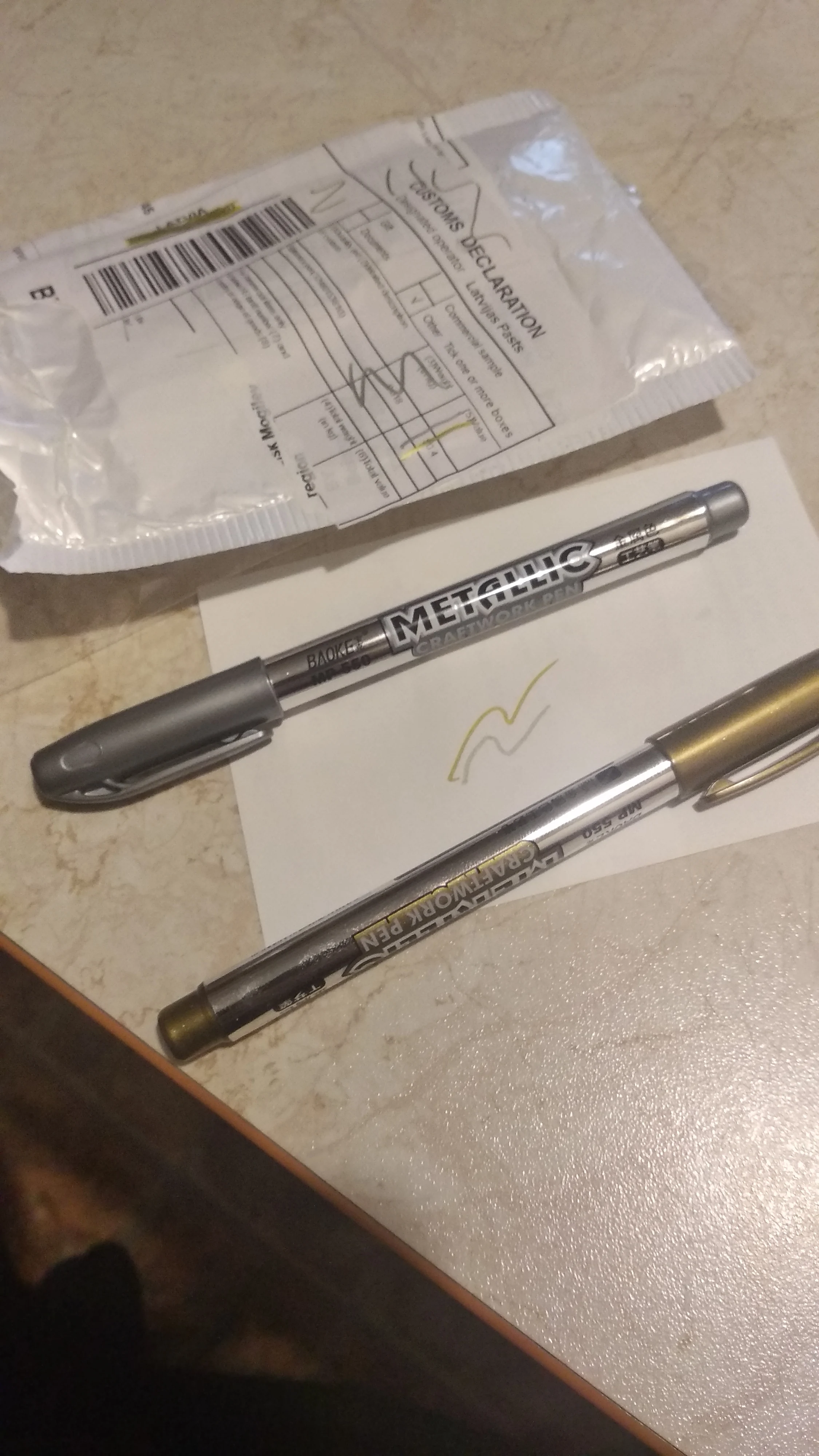 Маркер хороший,пишет ярко и действительно близок к золоту