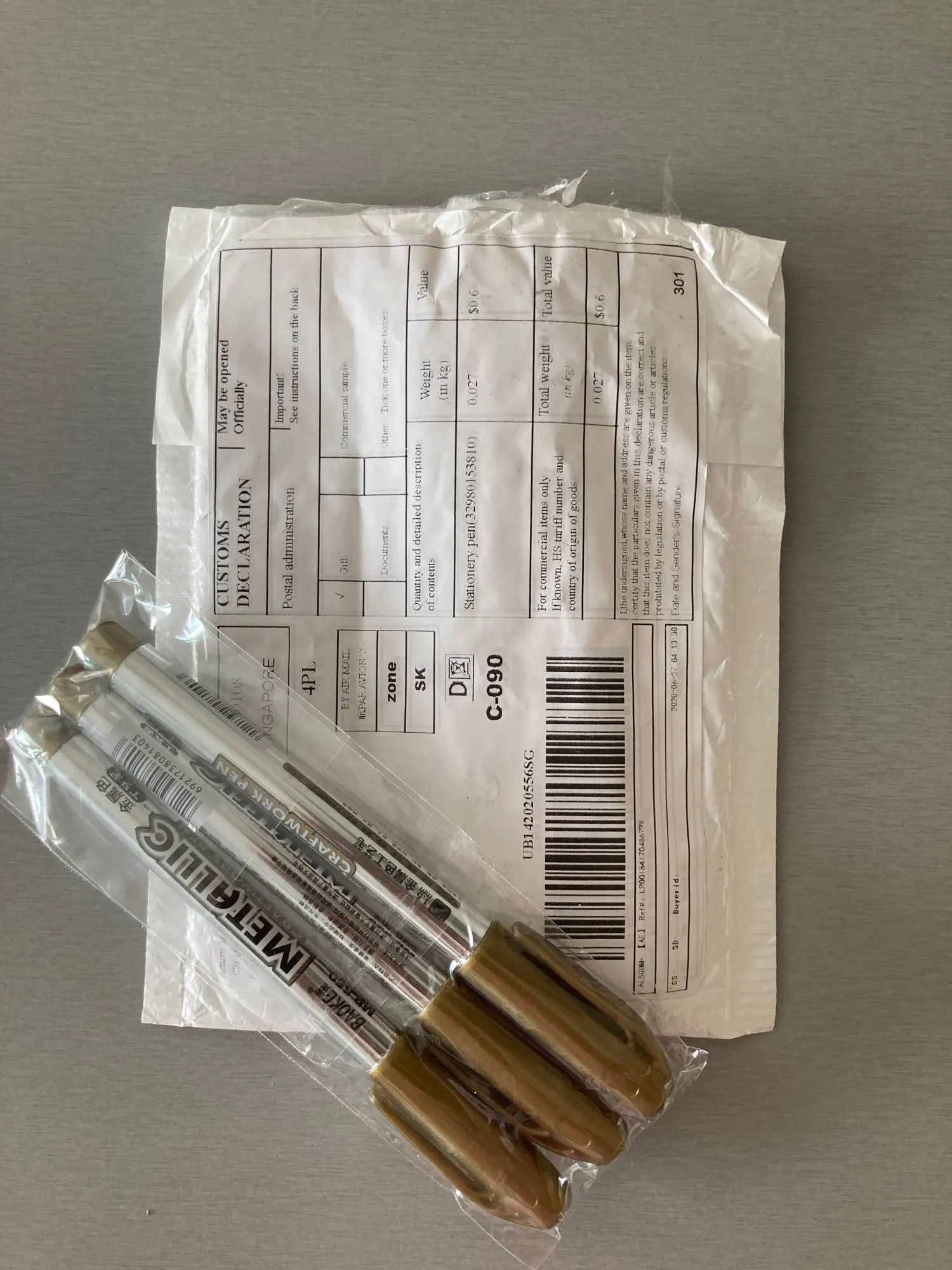 До ХМАО посылка долетела за 15 дней, причём с полным отслеживанием в приложении почта России. Приятно удивлена и доставкой и качеством товара. Заказывала фломастеры в двух цветах: серебристый и золотистый. Товар соответствует фото и описанию продавца! Золотой маркер чуть поярче серебристого. Смело могу рекомендовать продавца и магазин!!!