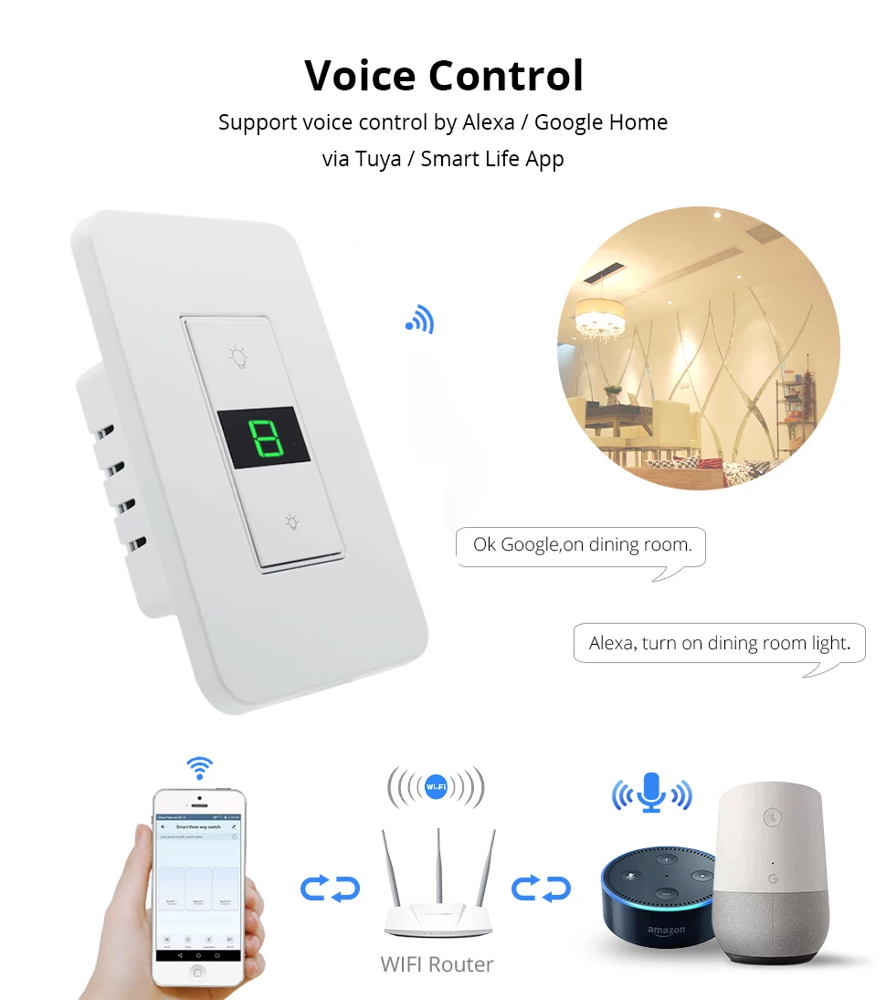 Переключатель-диммер для светильник, 110 В, 120 В, Wi-Fi, Zemismart Tuya, поддержка Alexa, Google Home Assistant