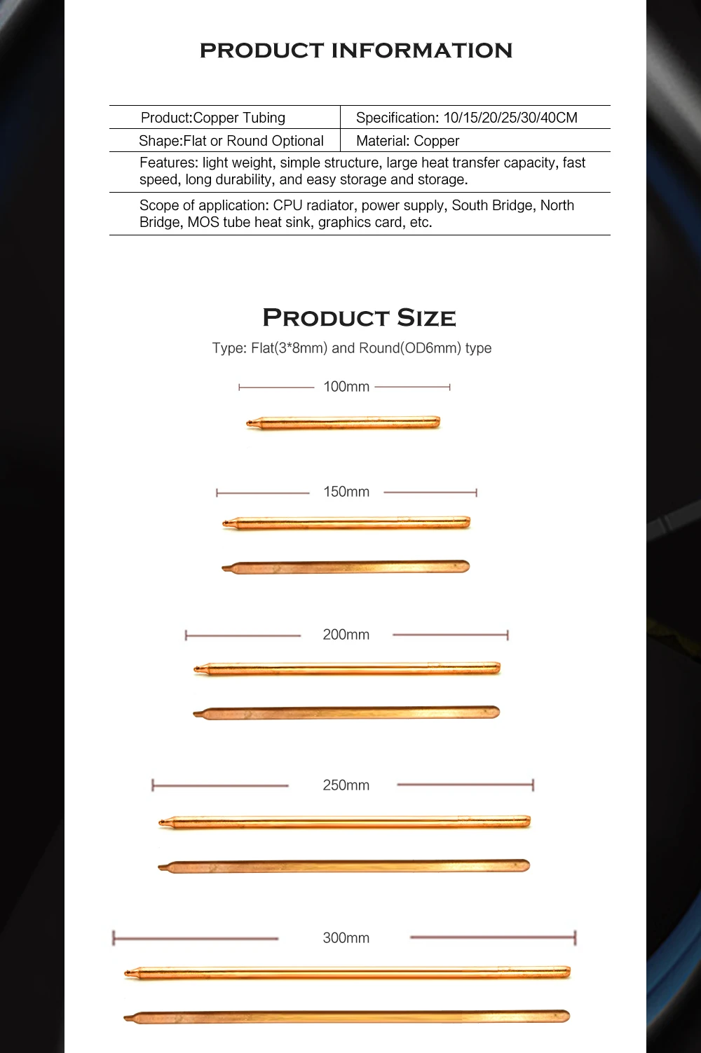Полный Медь охлаждения трубки для портативного компьютера Тетрадь радиатор тепловая трубка с плоским экраном или круглая Форма 100/150/200/250/300/400 мм