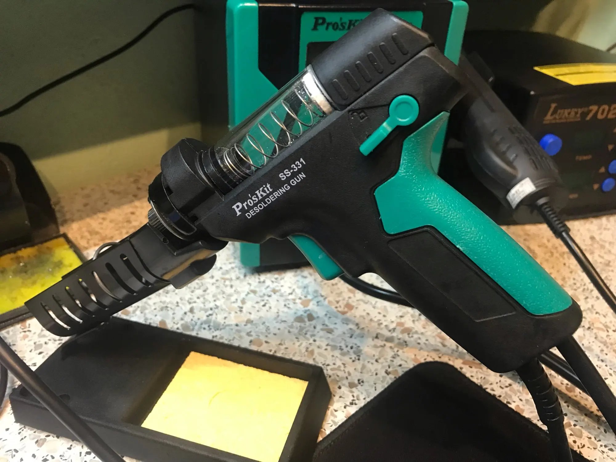 Очень хороший агрегат и его качество. При получении думал что колпачки на пистолете заглушены. Оказался припой на всех. Включаете, прогреваете и всасываете припой с колпачков.