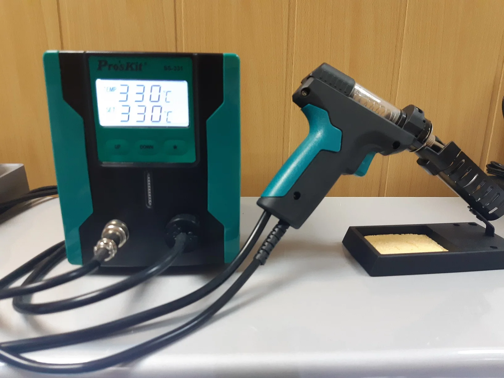 Хороший компрессорный оловоотсос. Качество материалов корпуса не очень ( обычный дешёвый пластик) но качество остальных элементов достаточно на высоком уровне. В комплекте идут сменные сопла, фильтры и иголки для прочистки сопел. Вообще м покупкой доволен!