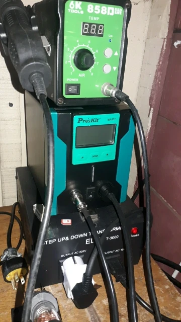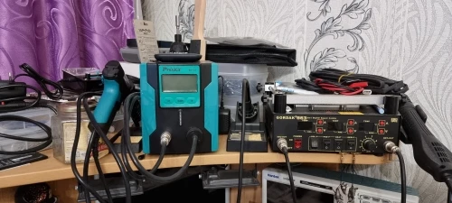 Мне нравиться моя покупка.Почему? Корпус оптимально компактный,пистолет для распайки удобный и легкий по весу.Тем-ра выпаивания для большинства компонентнов лежит в диапазоне 320-380 градусов для плат с 1-2 сторонней печатью.Для мощных типа трансформатор и различных разъемов на многослойных платах может доходить и до 480,а иногда нужен нижний подогрев.Цена у него нормальная по сравнению с тем же Квиком, хотя делает он ту же работу.