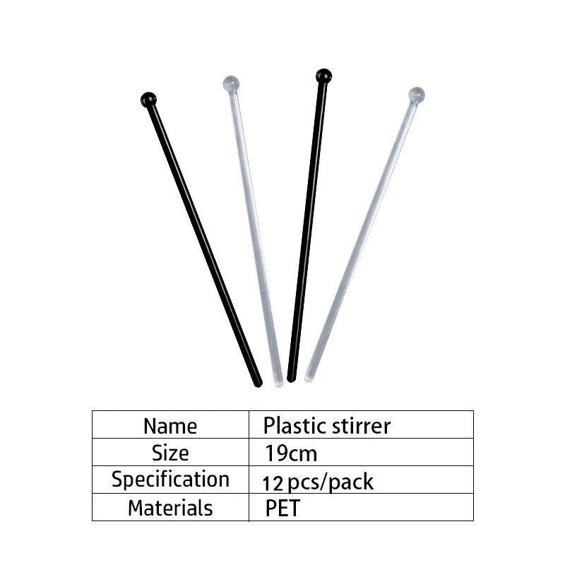 12 шт. прозрачные + черные пластиковые палочки для коктейлей помешиватель для напитков, вина, кофе, пудлер, украшение для бара KTV ECO