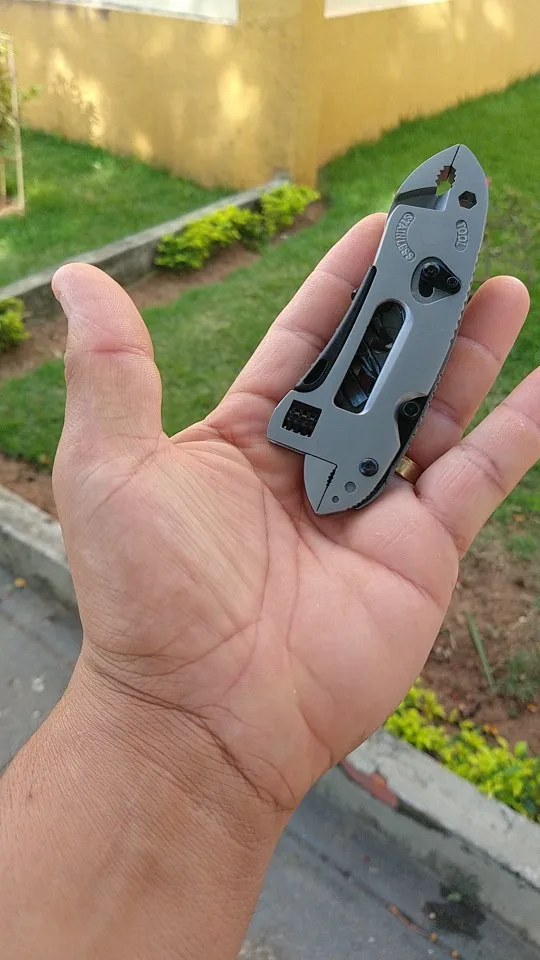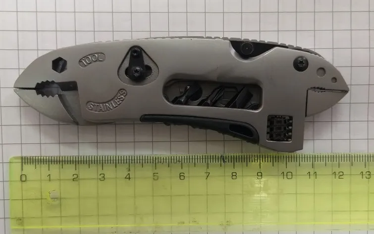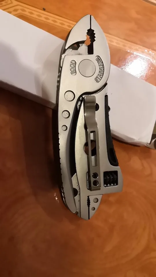 Посылка пришла быстро, сам мультитул хороший за такие деньги. Из минусов обнаружил что нож не фиксируется в розложеном состоянии, нет фиксатора который удерживал бы его когда что-то режешь, он шатается. Сам разводной ключ имеет небольшой люфт, но это не критично. В целом покупкой доволен, снял одну звезду за описанный выше минус