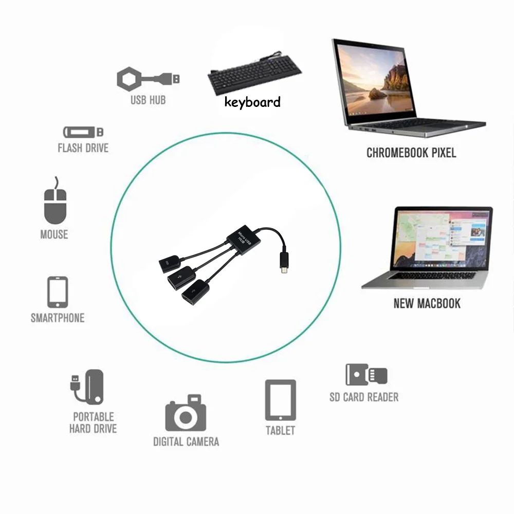 3 в 1 Micro USB OTG HubДва USB 2,0 и один 5Pin микро USB интерфейс находятся в одном OTG концентратор, может удовлетворить несколько потребностей.МногофункциональныйМногофункциональный двойной micro USB хост OTG концентратор адаптер кабель. Два usb-порта, совместимы с клавиатурой, мышью, кардридером и т. д.Портативный и миниКомпактный размер и легкий, легко носить с собой. Он действительно портативный и практичный. Это может значительно сэкономить ваше рабочее пространство, и вы можете легко взять его везде.Хорошее качествоИзготовлен из высококачественного материала, долговечный и легкий. Шнур долговечный и износостойкий.Сильная совместимостьСовместим со всеми планшетами и большинством мобильных телефонов Android с функцией OTG, например, для Dell Venue 8 Pro, для планшетов Windows 8 ", для Samsung Galaxy Tab 4/3/2, для Note 10,1, для Samsung Galaxy S5, для Google Nexus 10 и т. Д.СпецификацияТип: Micro USB OTG HUBМатериал: АБС-пластикЦвет: черныйКоличество: 1 шт.Длина кабеля: 20 см/7,9 дюймаВес нетто: 25 г/0,9 унцийУпаковка:1 * Micro USB OTG концентратор