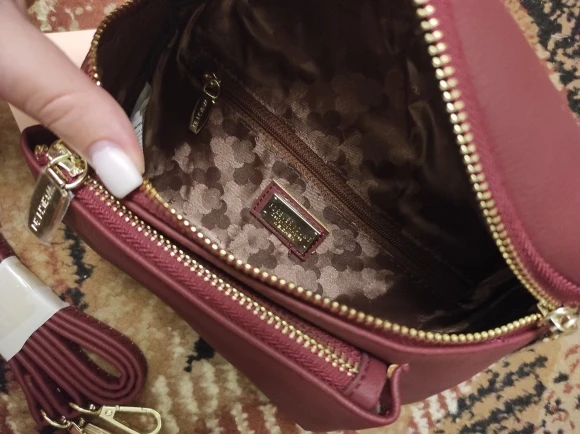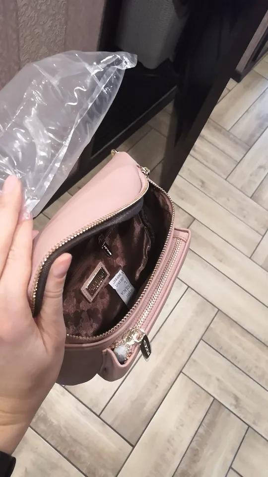 уже вторая сумочка данного бренда Все как всегда на высоте! Упакована была в пыльники, внутри пакет с воздухом, шовчики все ровные, фурнитура отличного качества, подкладка внутри вся прошита.На ощупь очень приятная, хочется все время гладить её.Сумочка не большая, но все самое необходимое вместится: маленький кошелек, духи, ключи, зеркальце, помада и телефон. Ремешок регулируется без каких-либо проблем, хочешь на поясе носи, хочешь через плечо. Первую сумку(круглую, винного цвета) покупала еще в сентябре и через полгода активной носки выглядит так же красиво Вообще полюбился мне этот бренд, обязательно буду заказывать ещё что-нибудь. Отличные базовые сумки под любой образ! К покупке однозначно рекомендую! Доставка быстрая, где-то 2-2.5 недели до Подмосковья. Продавцу