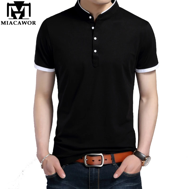 Мужская хлопковая футболка-поло MIACAWOR, приталенная рубашка с воротником-стойкой и коротким рукавом, T745