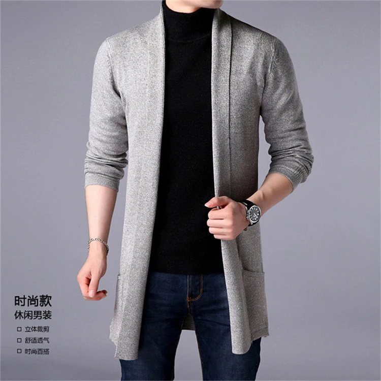 Длинный мужской свитер, вязаный кардиган, однотонная кофта, весна
