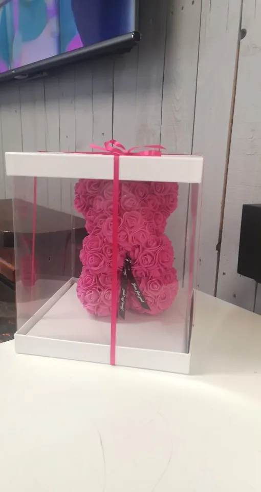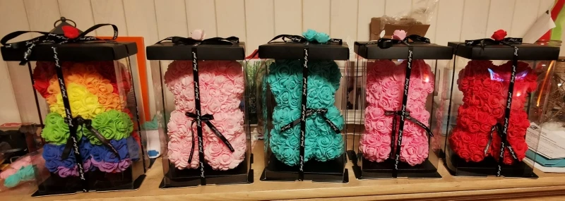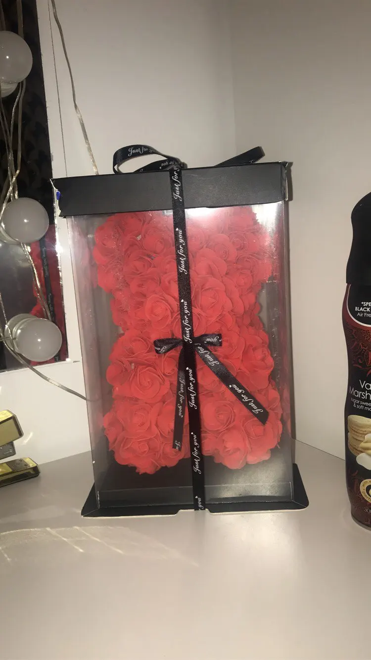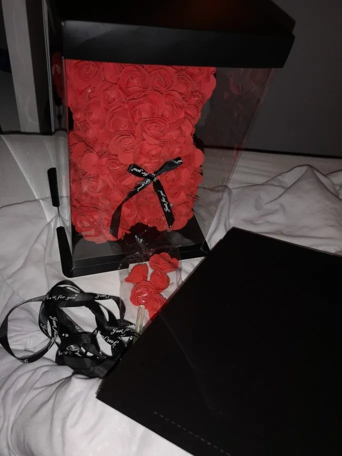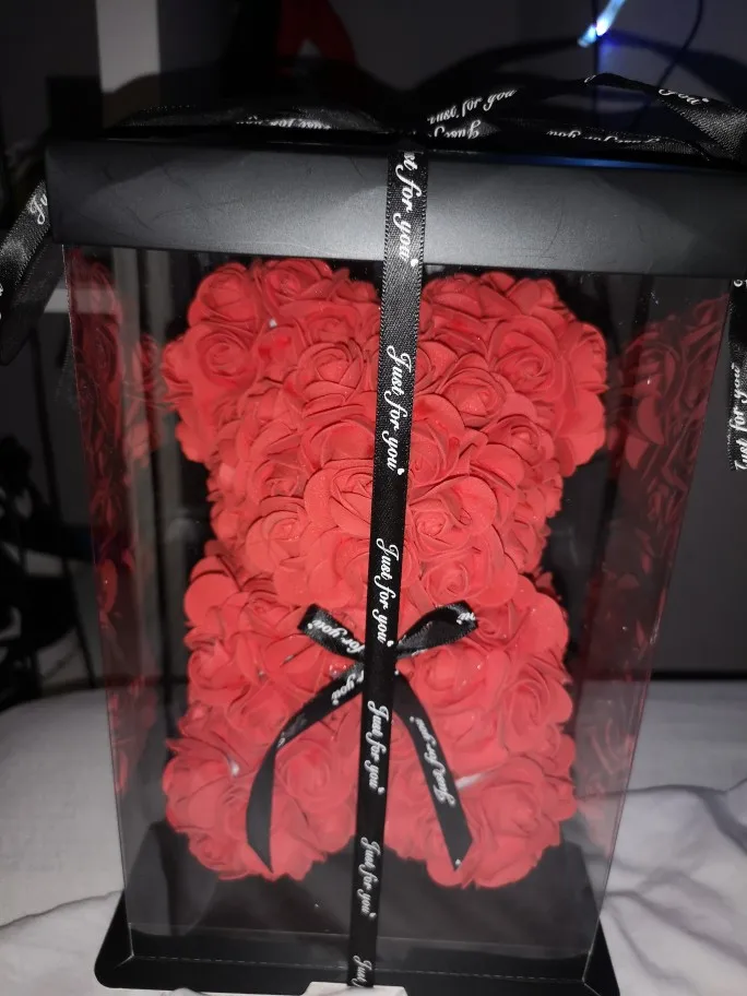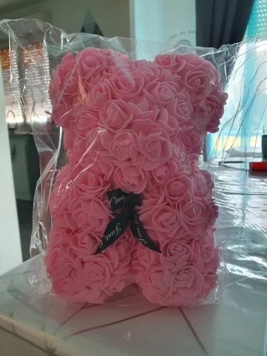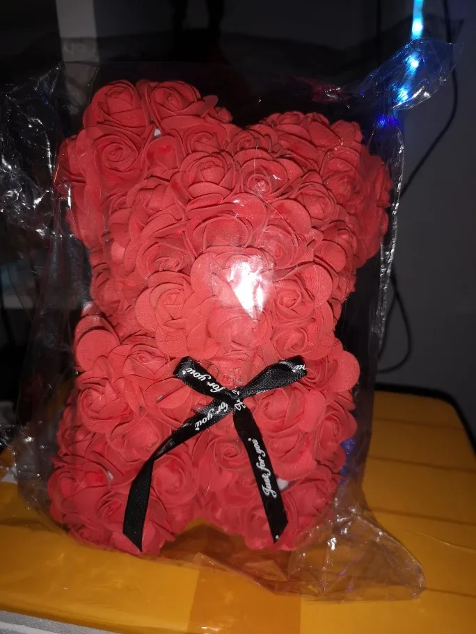 У продукта было много ошибок, таких как пропущенные лепестки цветов, и он также кажется, что продавец просто приклеил лепесток на себя, потому что на некоторых лепестках были струны сухого горячего клея. Этот медведь был ужасно раздавлен, и доставка заняла 1 месяц дольше, чем ожидалось. Я также купил этот подарок в качестве подарка на годовщину, и подошло довольно поздно.