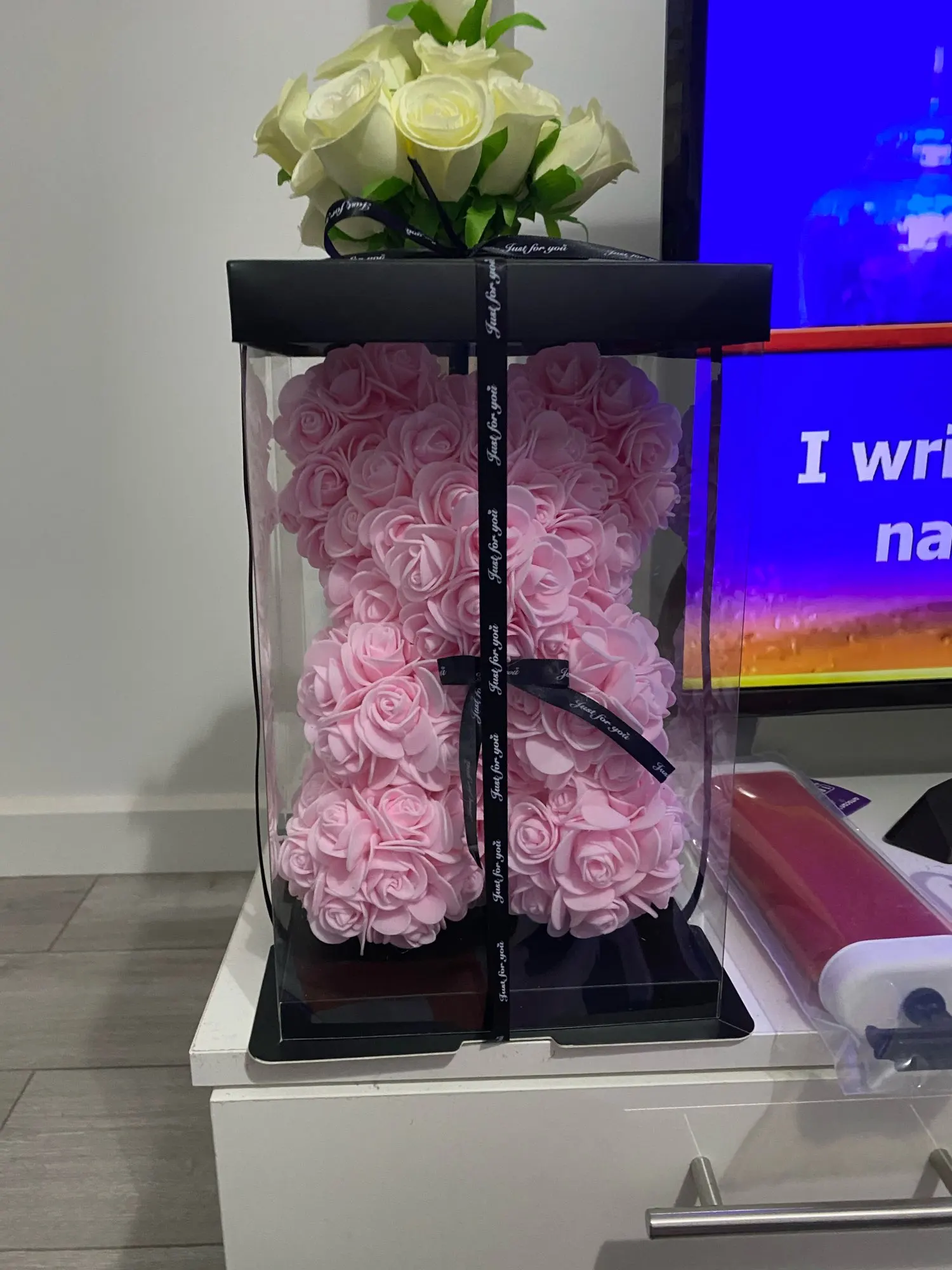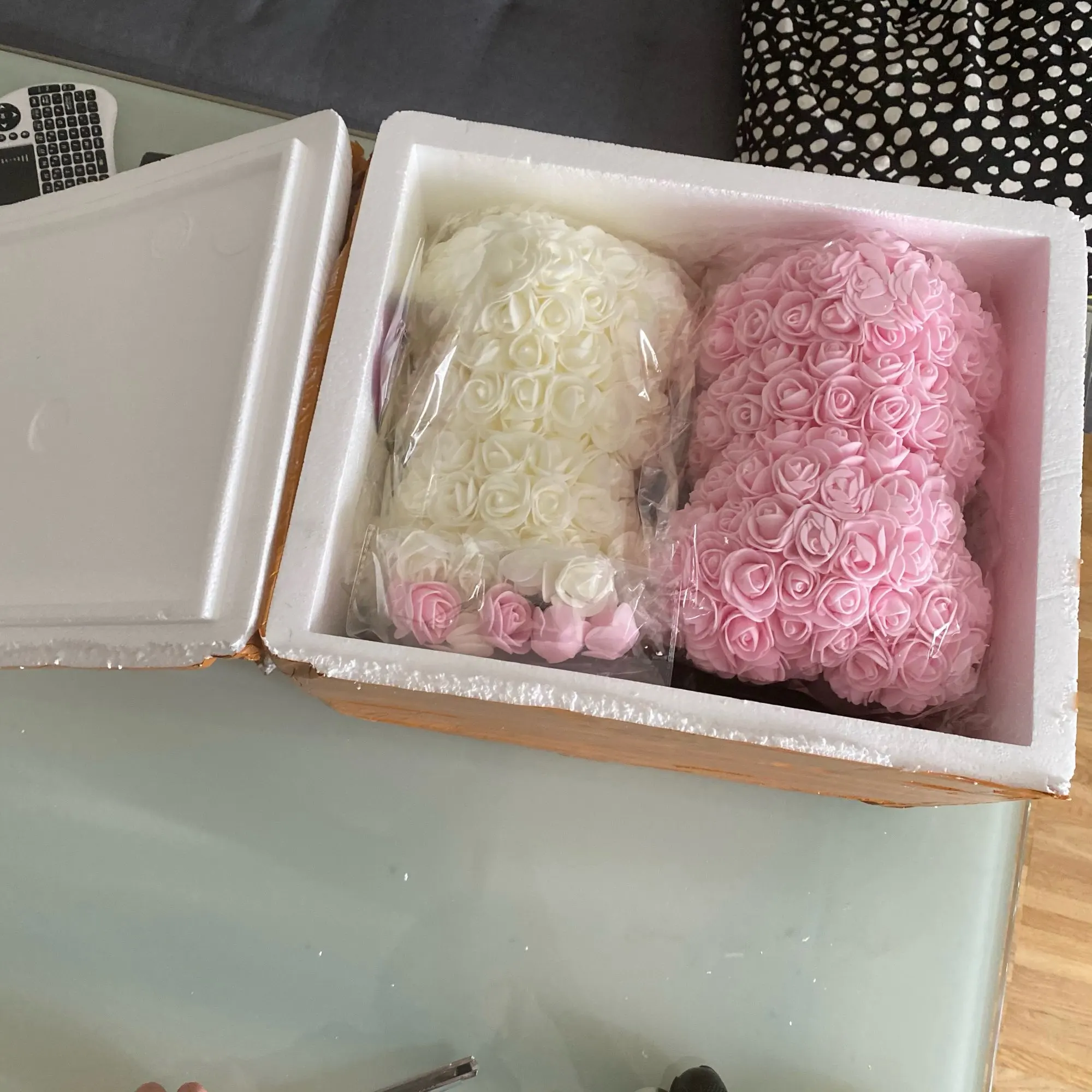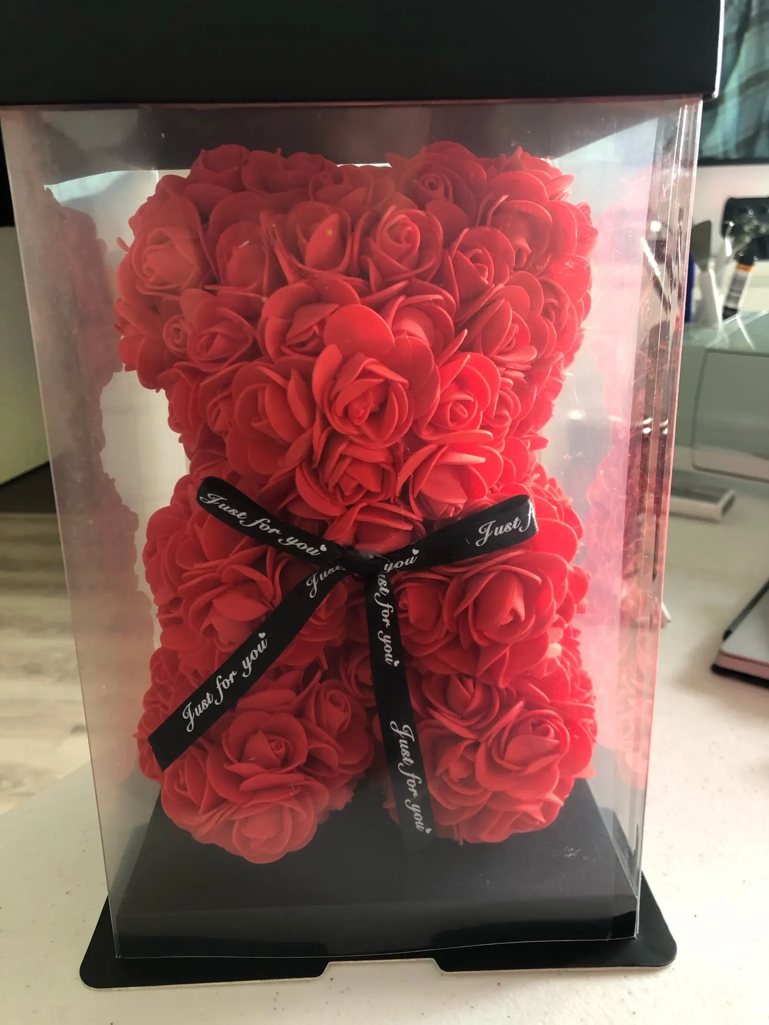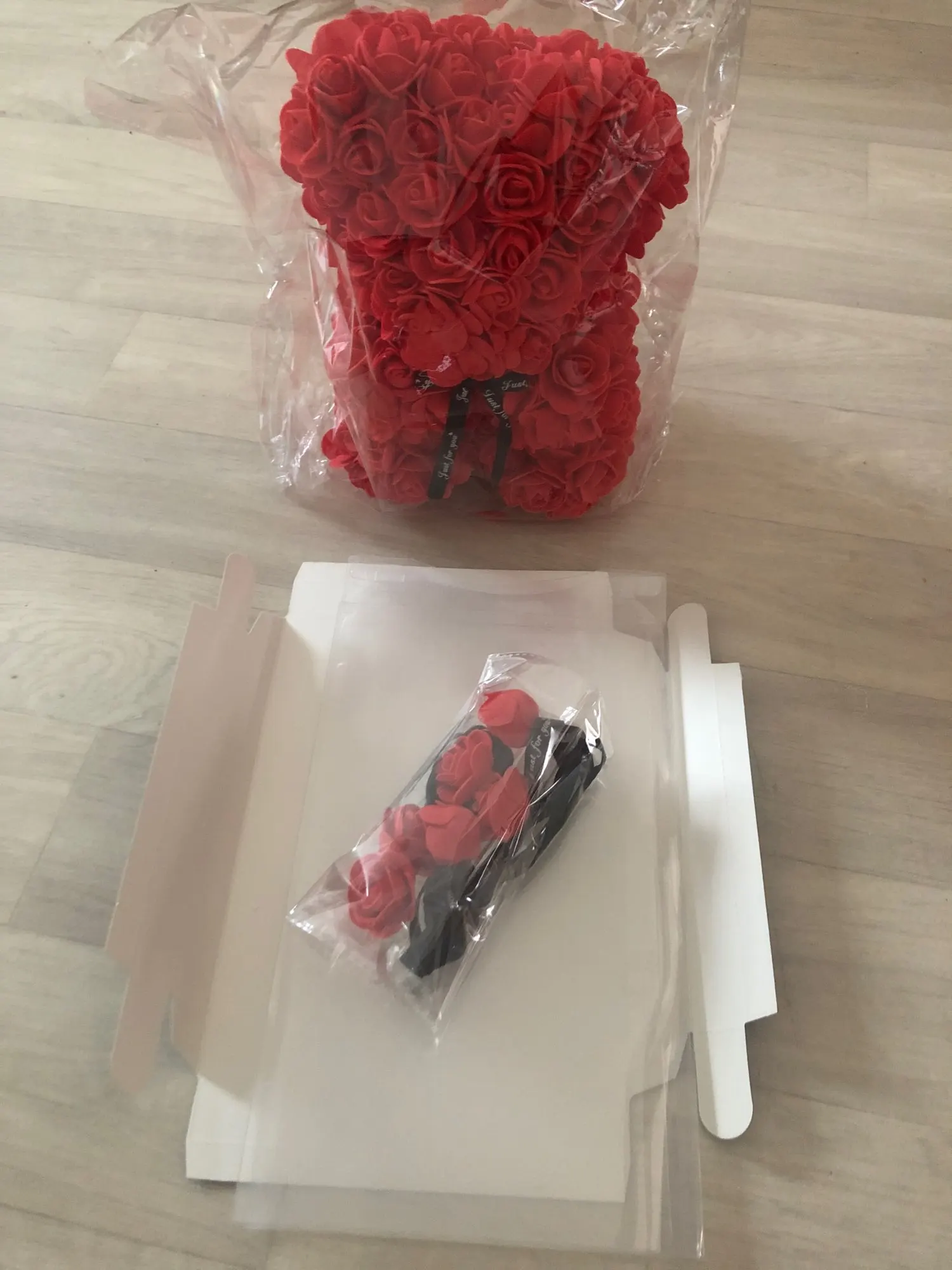 У продукта было много ошибок, таких как пропущенные лепестки цветов, и он также кажется, что продавец просто приклеил лепесток на себя, потому что на некоторых лепестках были струны сухого горячего клея. Этот медведь был ужасно раздавлен, и доставка заняла 1 месяц дольше, чем ожидалось. Я также купил этот подарок в качестве подарка на годовщину, и подошло довольно поздно.
