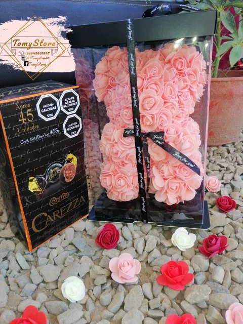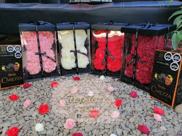 DIY 25 см Мишка Тедди роза с коробкой Искусственные из ПЭ цветок медведь Роза День святого Валентина для девушки женщины жена мать день подарок