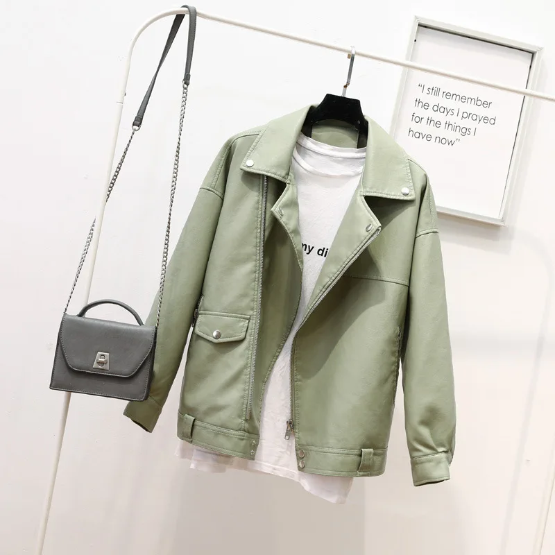 Куртка женская из искусственной кожи, Байкерская, в стиле панк, свободная, размера плюс