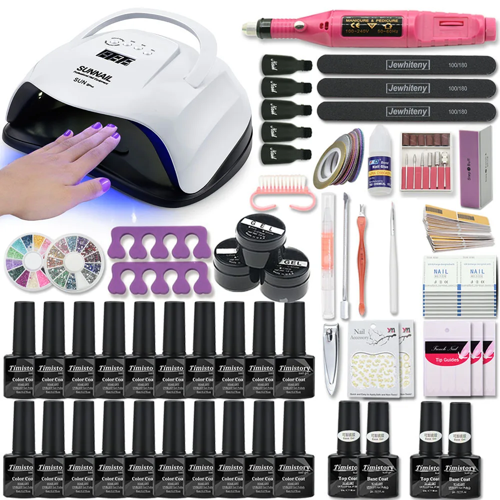 Набор для маникюра с УФ-лампой, 10 и 20 цветов, сверлильный станок для ногтей, пилочка для ногтей Набор для наращивания ногтей
